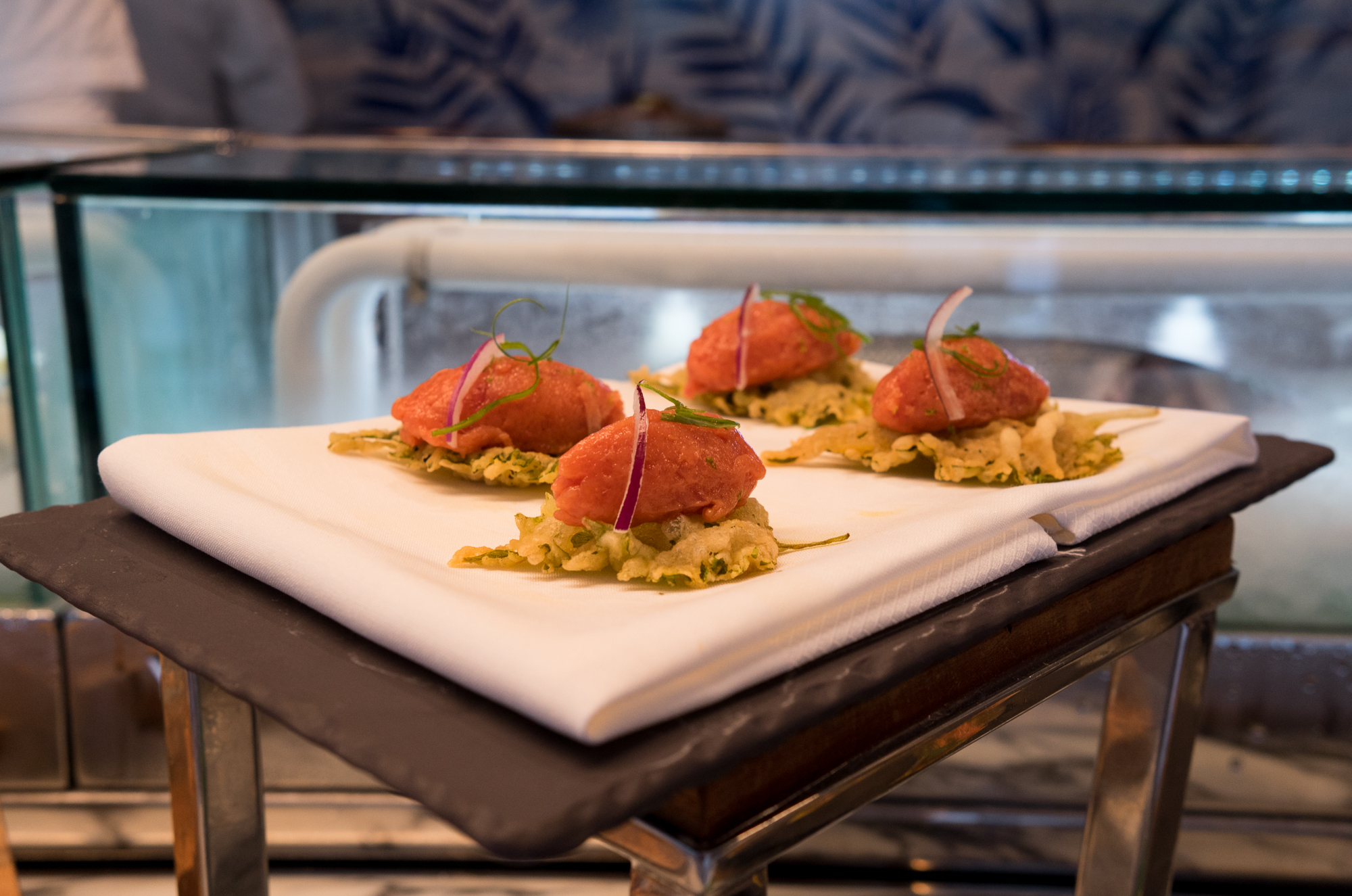 When José Andrés opened his latest Miami restaurant, Bazaar Mar, late last year it quickly became one of the most buzzed about restaurants in Miami. The opulent white and blue setting with nautical touches, unique seafood combos and quirky touches made its dinner service a special experience – and when we were invited to try out the brunch we knew it would be the same.