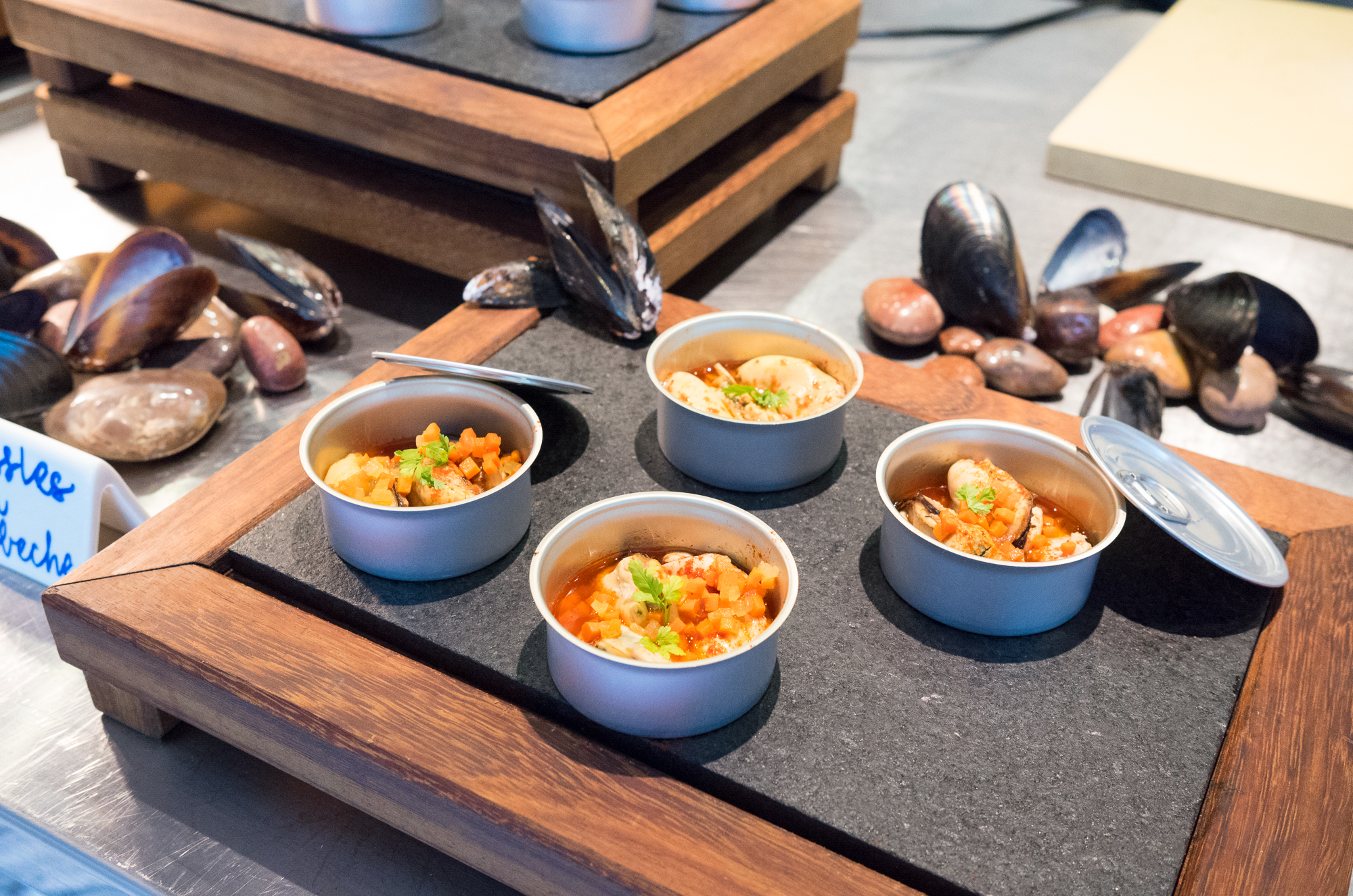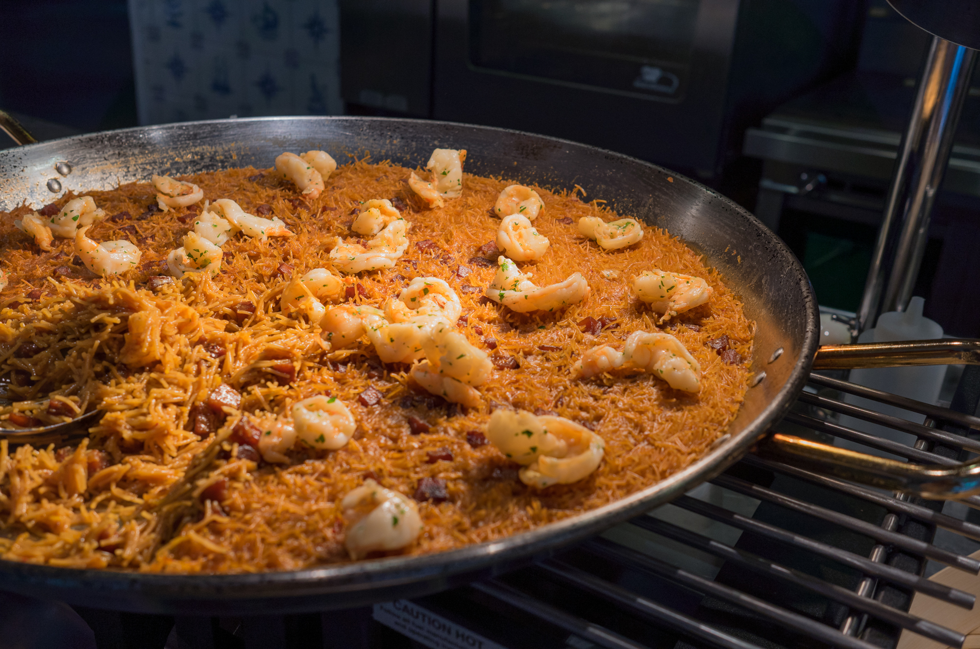 Helmed by chef de cuisine Manny Echeverri, the brunch starts with two lavish buffets, one dedicated to raw seafood with items like King Crab, Smoked Salmon Tartare, Crudos, Caviar and Steam Buns that come complete with tubes of crème fraîche. The second table features items like east and west coasts Oysters with a variety of mignonettes, Fried Fish, Fideuà, freshly cut Jamón and Egg Tortilla made on the spot in Andrés’ signature gastronomic way.