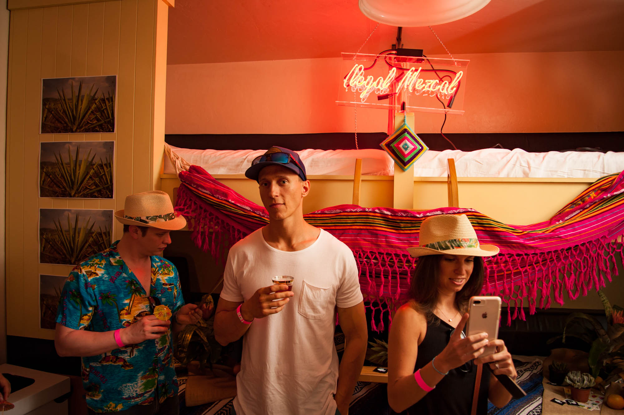 The sold-out event brought 500 people out to come to try out the different beverages created in each room of the first floor of the hostel each boasting a different theme like tropical getaways, the wild west, and more. Guests were encouraged to get their passports “stamped” in each room after tasting the delicious concoctions. Brands like Ron Diplomático, Zacapa, Leblon, Ilegal Mezcal, Aperol, and many others, represented with some of our city’s best bartenders serving up drinks.