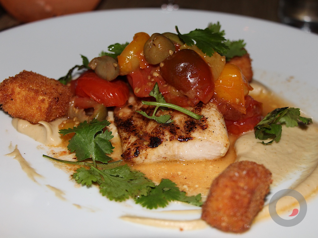 Mahi Mahi – grilled mahi mahi, eggplant puree, slow cooked heirloom tomatoes, country olives