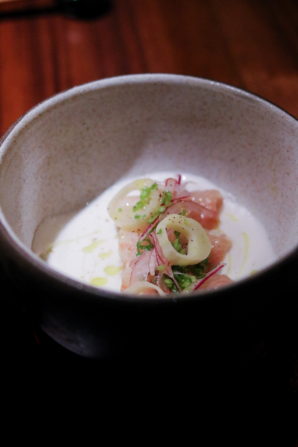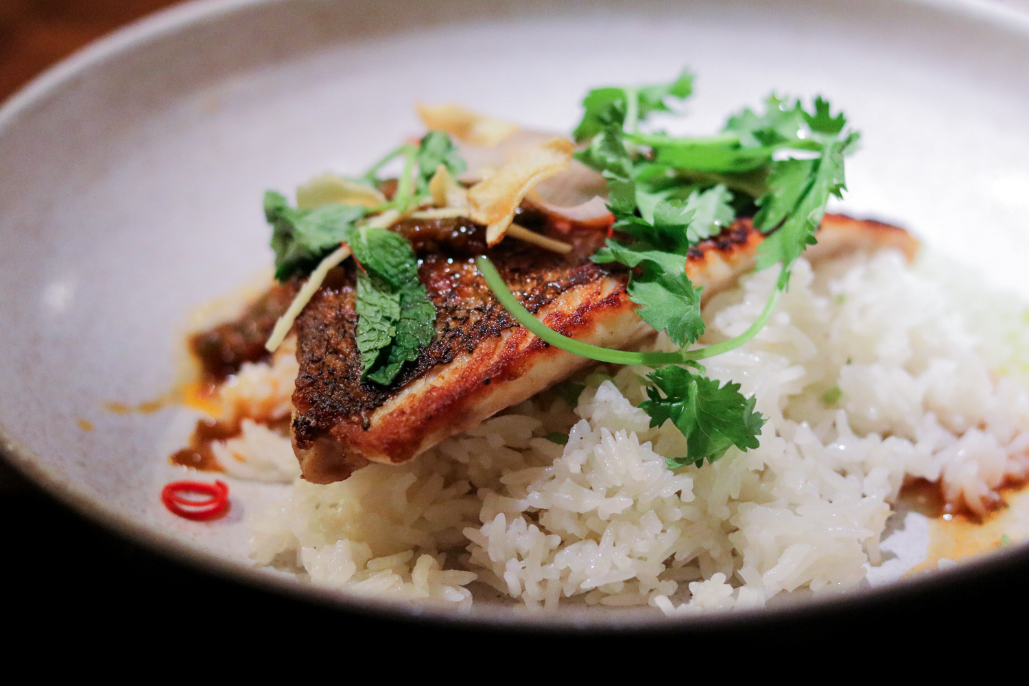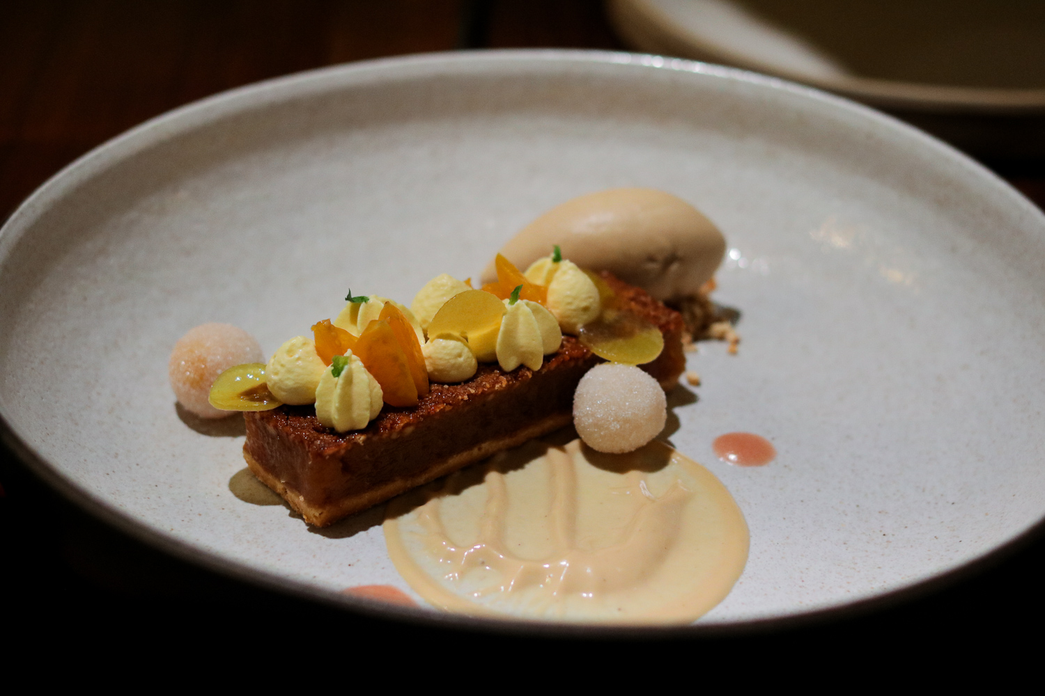 A condensed version of the regular menu, the pre-theatre menu gives you a choice of first course, rice, entrée, and dessert. But these are no blasé or boring selections. First course features Hiramasa Kinilaw, a refreshing mélange of hearts of palm with coconut milk and vinegar, red onion, coriander and arbequina (a fancy tree from the Mediterranean) olive oil, or a potpourri of Grilled Greens, bitter and sweet greens with pine nut praline, green apple, charred onion sour cream. Both are a bracing precursors to the rest of the meal, though if you want to round out your experience go off theatre menu and order the Unicorn a la carte. The elusive starter combines sea urchin with grilled sweet corn pudding, kalamansi, chile de arbol, and a sake aioli for a result that’s as unbelievable as its moniker.