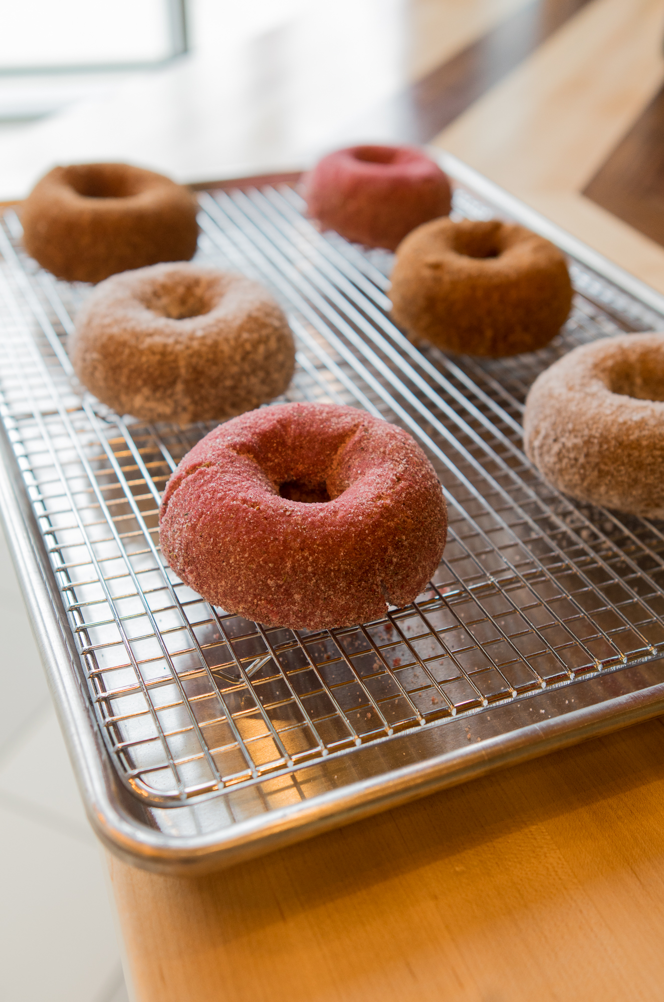 Doughnuts are split into two categories, hot fresh and fancy. The hot fresh are made-to-order by a “donut robot” and tossed in your choice of sugar including Strawberry Lavender, Cinnamon Brown Sugar or Cookies ’n Cream.