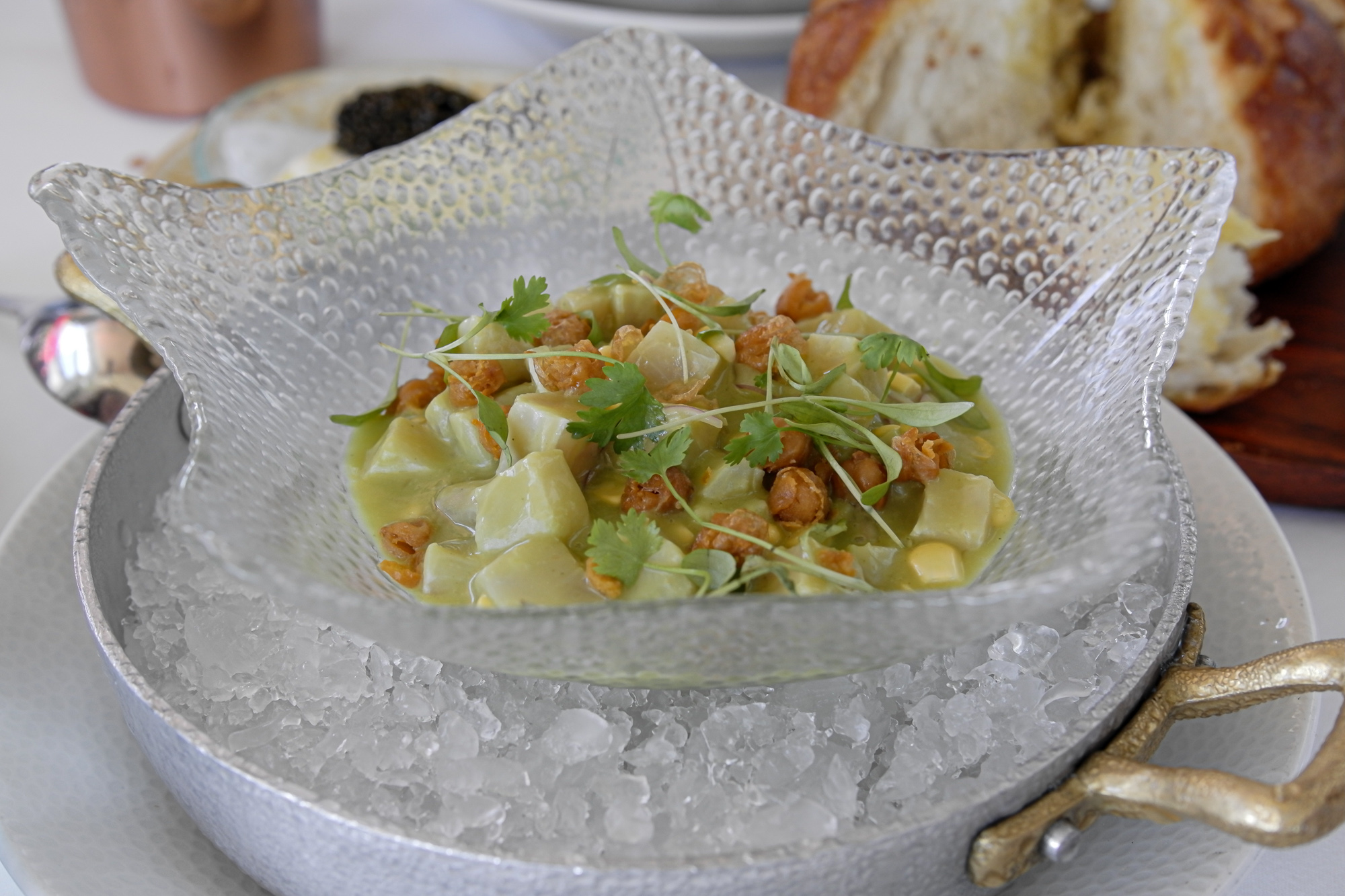 Silence the voice in your head telling you not to fill up on bread and dive into the warm, toasted Sullivan Bakery Loaf as soon as it hits the table. You won’t regret a single calorie, especially if you’re lucky enough to get yours with a side of caviar as we were. Look around you’ll see the Double-cut Bacon swinging on several tables and want to order your own clothesline of pork to share. Just do it.