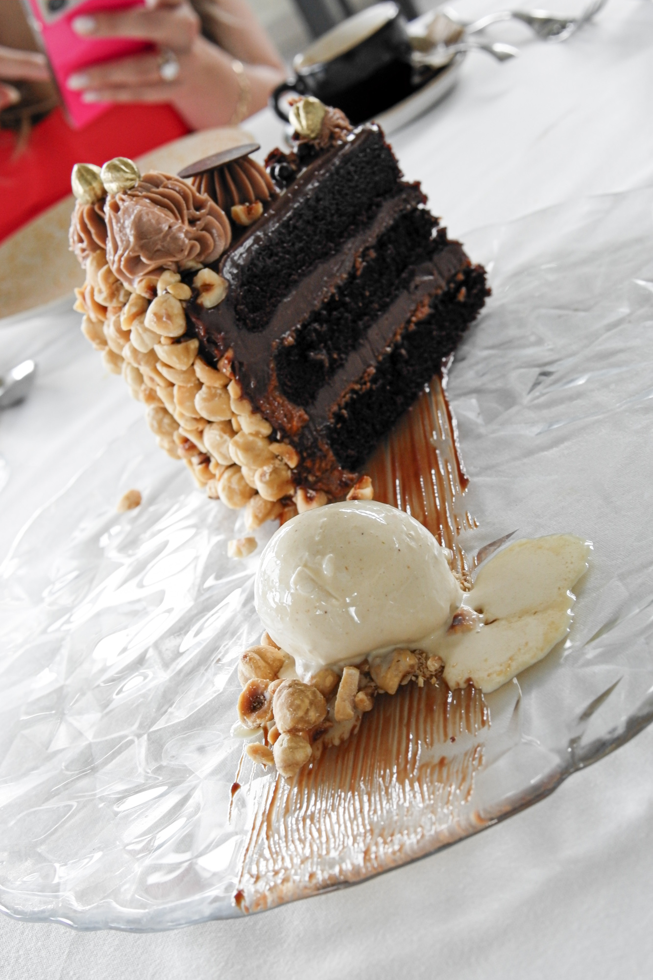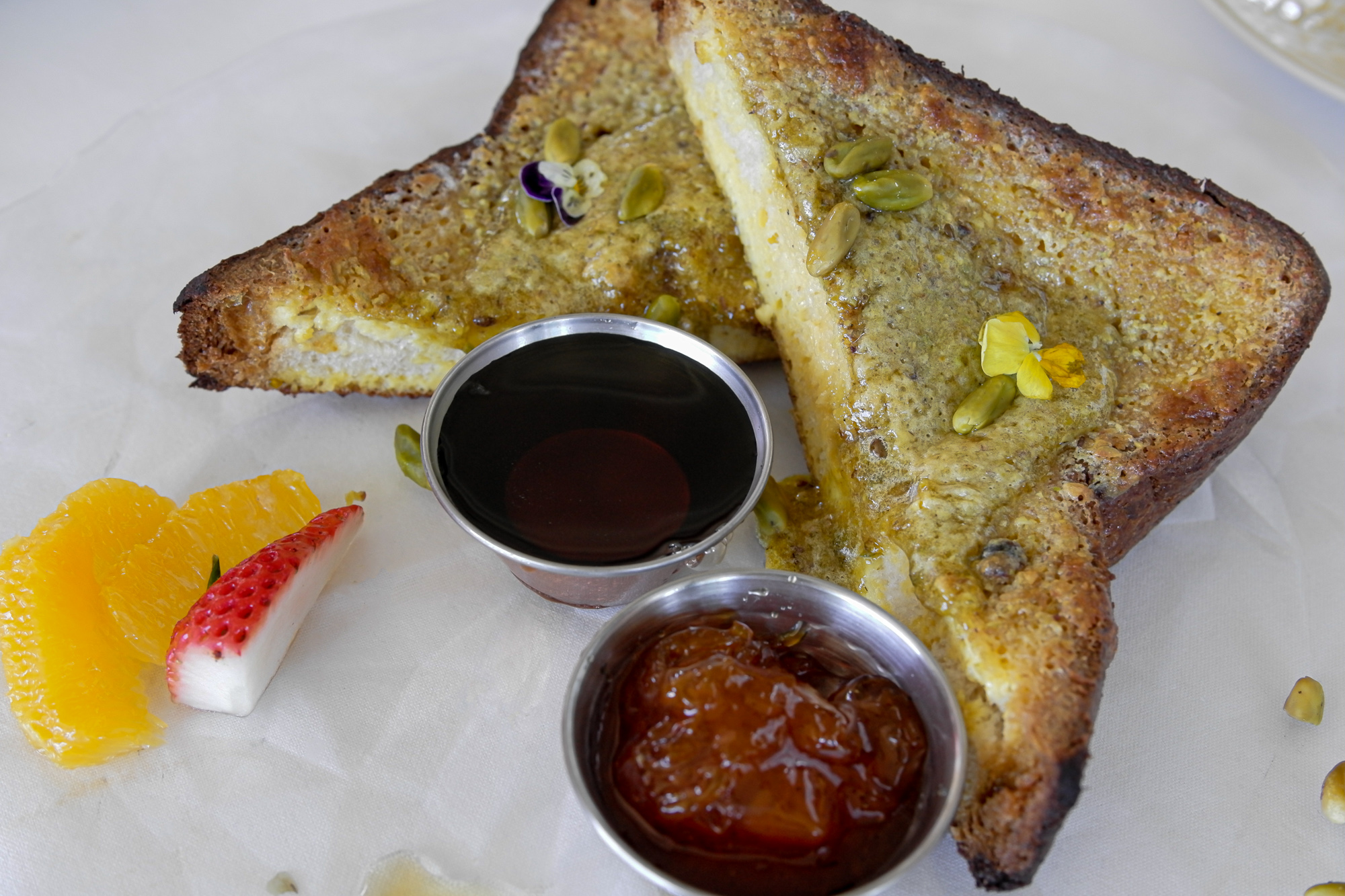 Brunch entrees run the gamut from light, like the Swordfish Milanese with fried egg on top to you’ll-need-a-post-meal-nap, including Fettuccine Carbonara, Lasagna and Eggplant Parmesan. The Panettone French Toast was an unexpected dish that could work both as an entree or a shareable dessert. It’s served with an orange blossom marmalade, pistachio zabaglione and Vermont maple syrup. Though if that doesn’t satisfy your sweet tooth, Fiola’s Grand Chocolate Cake will do it. The massive, $36 (!) slice features layers of Piemontese Gianduja ganache and hazelnut streusel and is served with a scoop of fior di latte gelato.