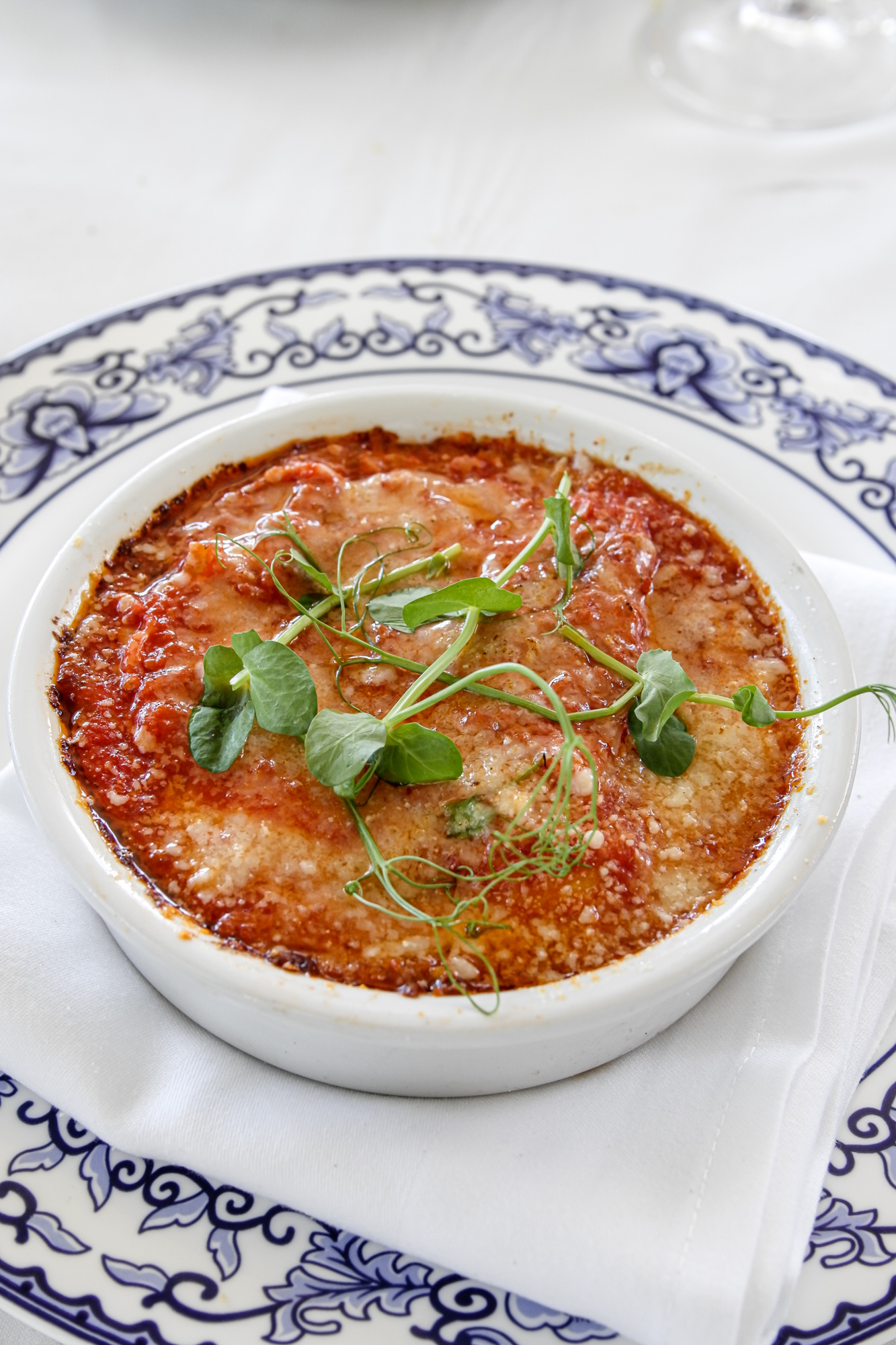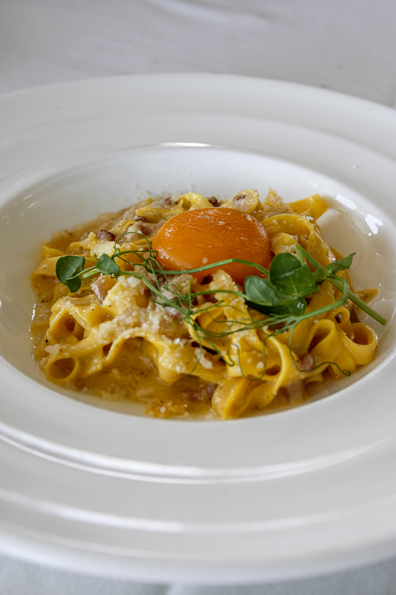 Unlike most brunches these days, this one is á la carte, allowing guests to choose from a selection of raw bar items, breakfast dishes and various types of pasta. You’ll want to ease into the experience with a refreshing Venetian Spritz and something from the raw bar menu: think a half-dozen Oysters with shallot and escabeche mignonette; Cobia Ceviche with leche de tigre, crispy chickpeas and red onions; and Hamachi Crudo with mandarin segments, red endives, shaved celery and cerignola olives.
