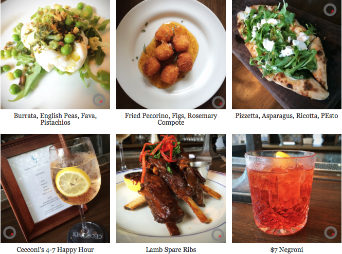 Cecconi’s recently launched its “4 to 7 p.m. Happy Hour” menu and we had to go and see if for ourselves. Imagine sitting at the restaurant’s gorgeous bar as the sun sets munching on $4 plates such as Fried Pecorino with Figs and Rosemary Compote or heartier dishes like Lamb Spare Ribs ($7) and washing it down with a couple of $7 Negronis. Check out the pics below and swing by Tuesday- Saturday (yes – Saturdays are included) and save us a seat at the bar.