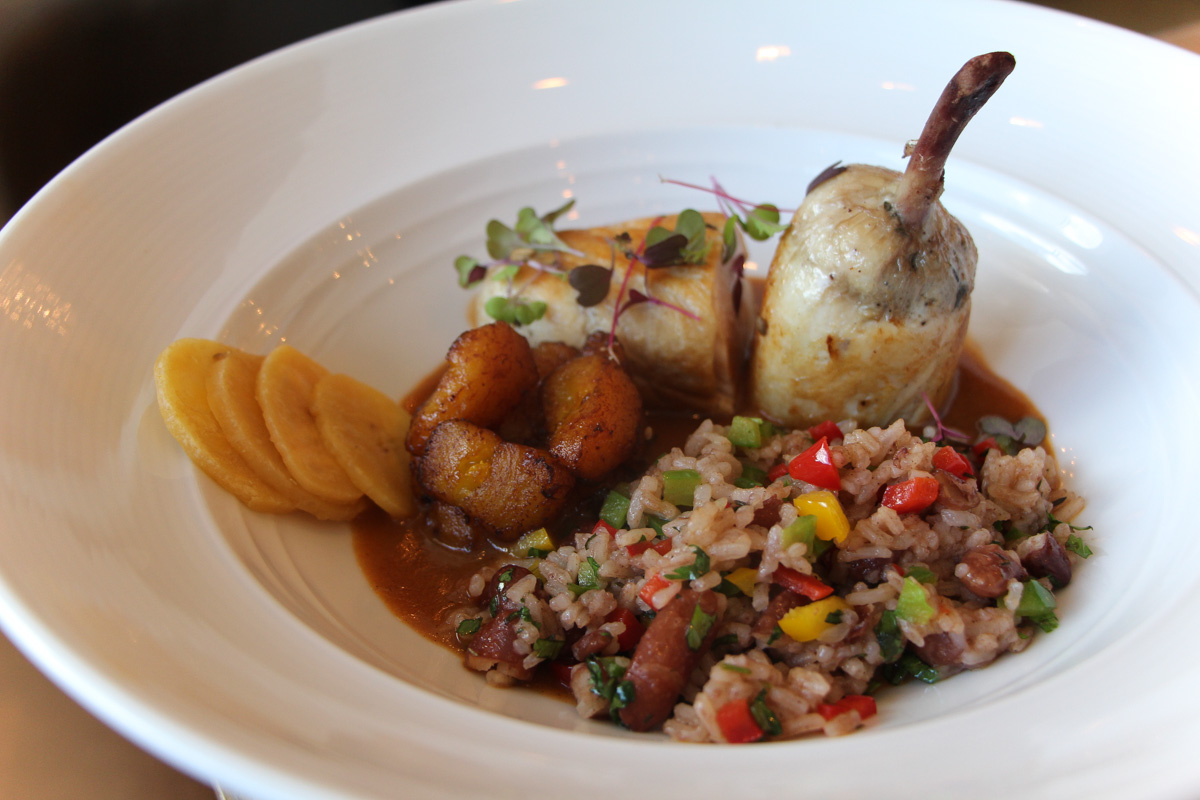 Just like lunch, EDGE is also offering a special Tico dinner menu that features three dishes for $59, or you can order them a la carte if so desired. For starters the we tastes the Puerto Caldera Tuna Tiradito made with freshly caught Yellowfin tuna topped with soy sauce, avocado, roasted corn, cilantro, and red onion. The almost too beautiful to eat (emphasis on almost) Plantain Crusted Pacific Sea Bass was served with a side of award-winning avocado quinoa cannelon along with a corn puree and citrus sauce. For dessert, we tried Tico’s unique spin on a Paleta made with arroz con leche, orange sauce and centenario golden raisins.