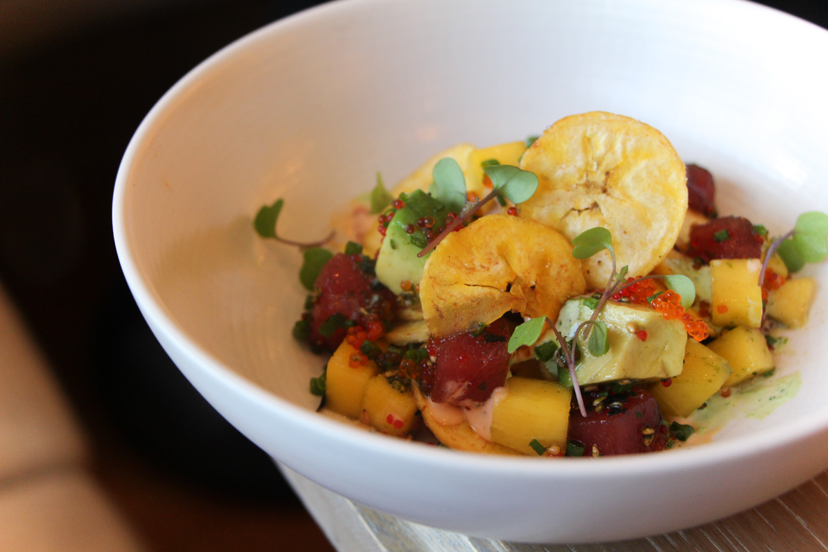 Since we like to hit up the bar at EDGE more often then we’ll admit, tasting the bar snacks offerings were a must. We tried the Ticos Tuna with avocado, mango, plantain chips and spicy mayo along with the Hearts of Palm Ceviche that features thinly sliced hearts of palm tossed with passion fruit, cilantro and bell pepper. Both dishes paired well with the special 18th on the Green cocktail made with Flor de Cana Rum, fresh lime juice, basil leaves and cilantro.