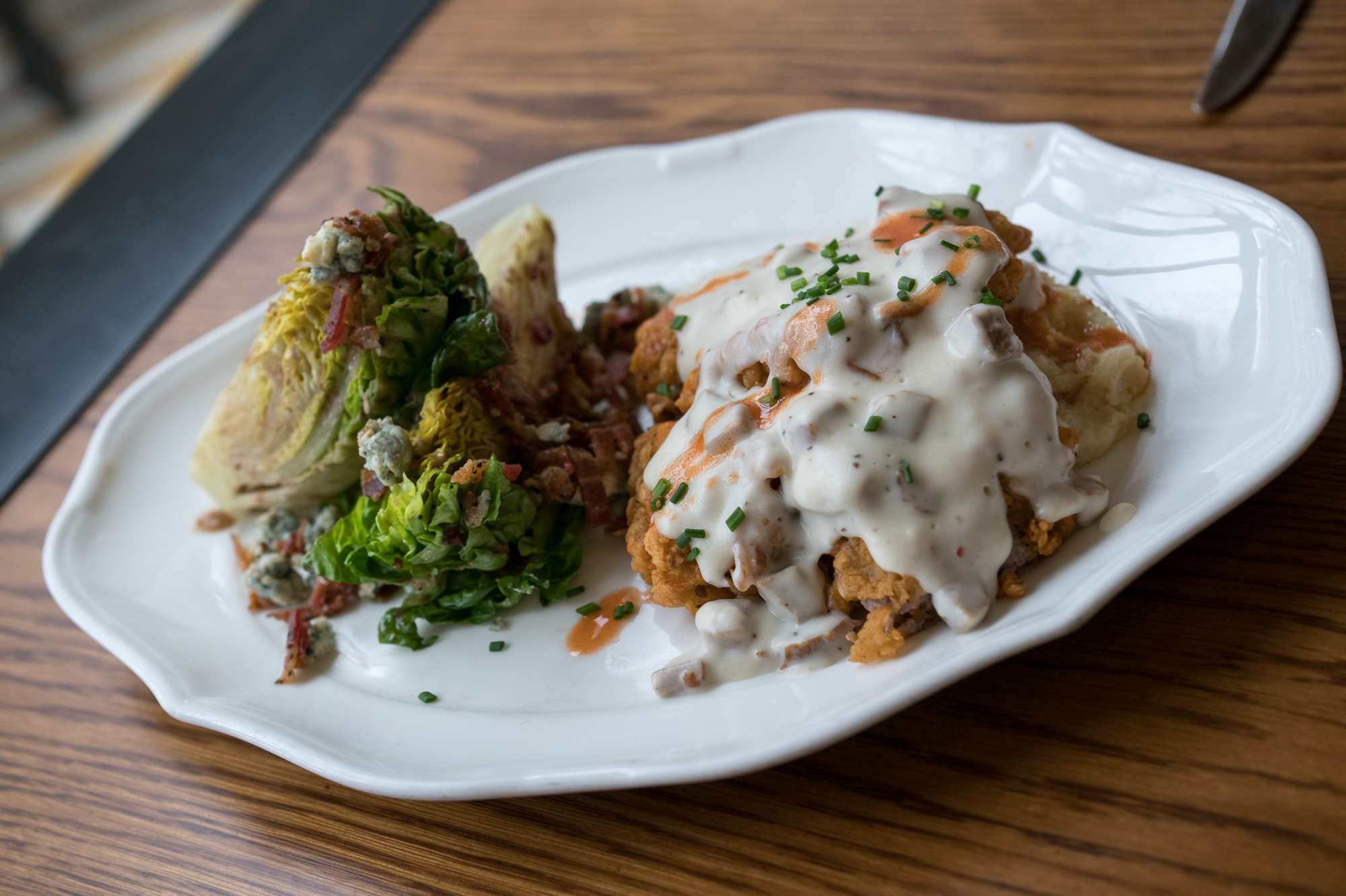 The highlights of our meal though were the Hot Chicken Fried Steak made with breaded beef, hot sauce, white pan gravy, whipped potatoes and bacon & blue wedge – while not a light meal, it was certainly worth the gluttony. Another highlight was the Fried Chicken & Cornbread Waffle made with the restaurant’s popular fried chicken, corn waffle, candied bacon and bourbon syrup.