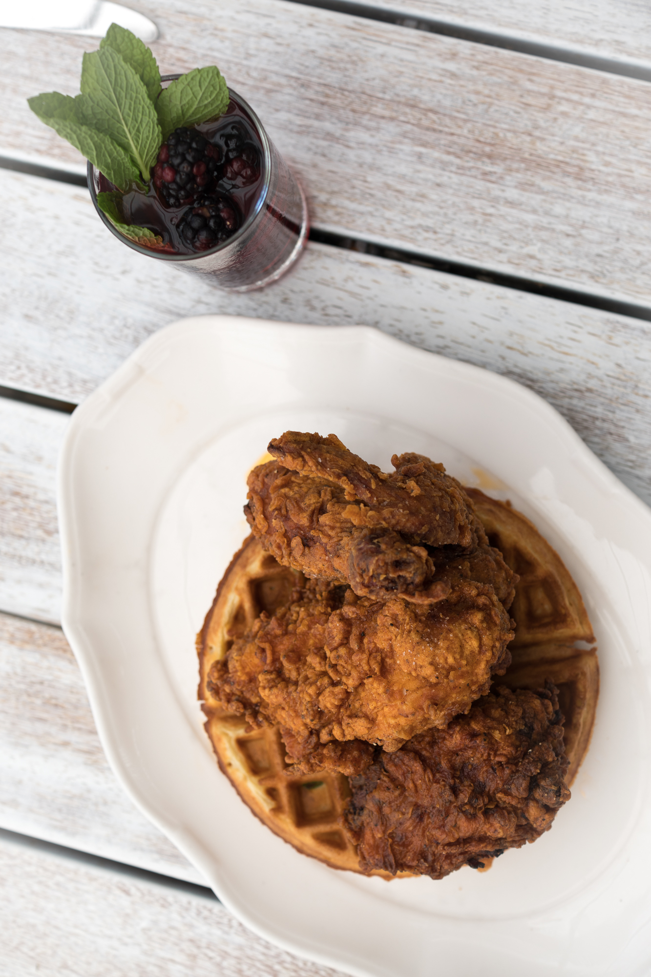 As for drinks, those keep with the Southern flare as well and we sipped on the Blackberry Bourbon Iced Tea made with Bulleit Bourbon, black tea, blackberry and mint along with the Creamsicle Mimosa filled with prosecco, orange juice, cream and sugar.