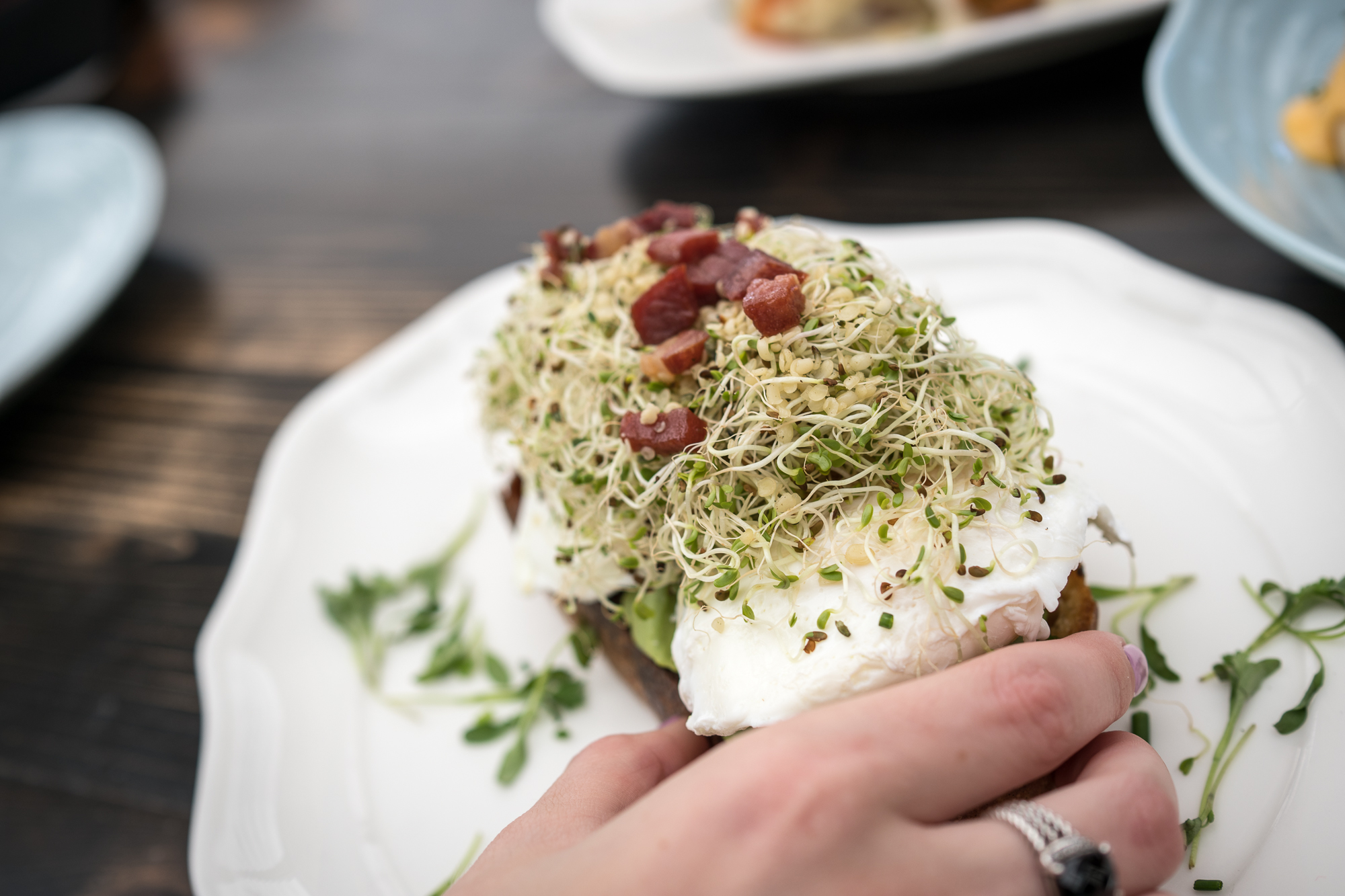 Signature brunch dishes will include a variety of options from light, healthy dishes to some of the Chef Richard Hales’ heartier options for which he is known. We started with the Avocado Toast & Eggs made with poached eggs, Benton ham bits, pink salt, olive oil, hemp seeds and sprouts, before moving onto the Bird & Bone Eggs Benedict made with poached eggs, Broadbent’s ham, fried green tomato, English muffin, and Alabama hollandaise along with the equally as hearty Biscuits & Gravy made with a cheddar biscuit made by Hales’ wife, along with eggs, sawmill gravy, and cheese heirloom corn grits.