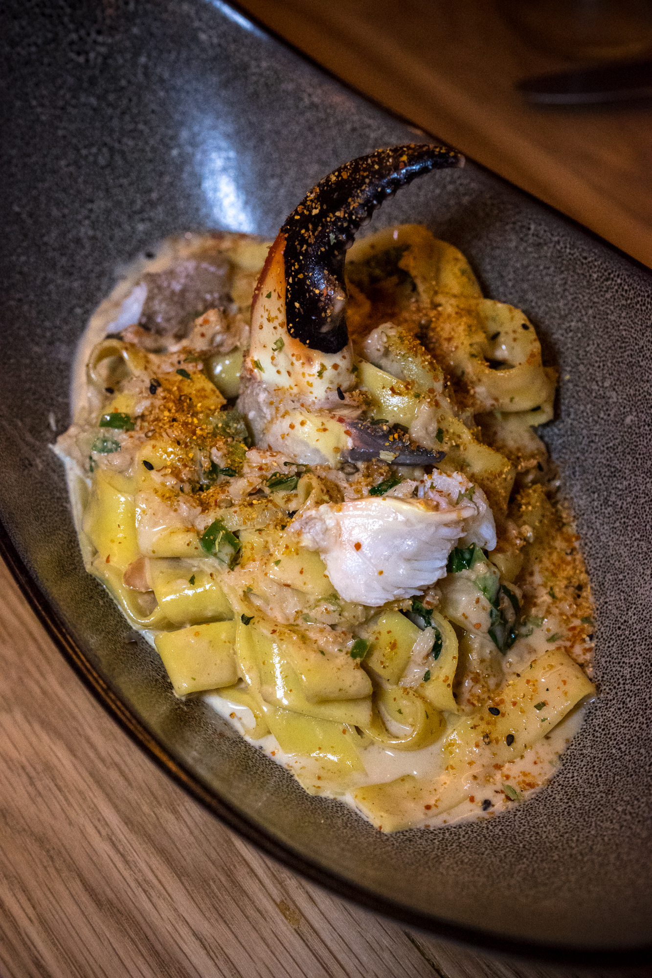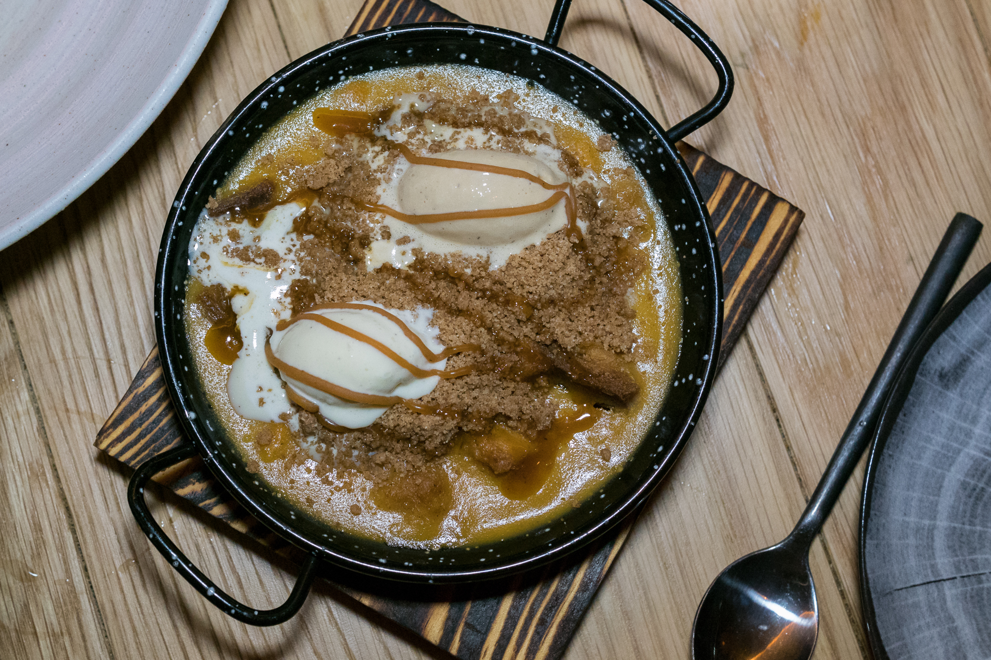 Moving onto the more decadent dishes, the tasty Habitat Egg made with a 63 degree poached egg, truffle, crispy prosciutto and plenty of manchego foam was quickly devoured by the table. Then it was time for the main courses. The dish that caught everyone’s eye when we sat at the table was the Stone Crab Fettucine, served in a miso citrus butter, with plenty of stone crab, bok choy and jalapeño. The other showstopping dish – whole Monkfish served on a table-side charcoal grill. All the dishes came with a bevy of sides include Asparagus with garlic soy, and Black Truffle Risotto with dry shiitakes, wild mushrooms, and soy jus.