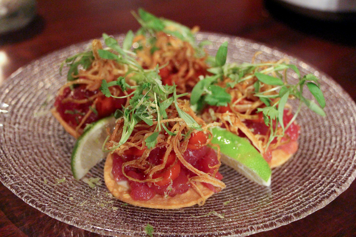 As for the menu, it was created by Executive Chef David “Rusti” Rustarazo who originates from Spain. It’s divided into several different sections and we got to try a little bit of each. For starters we had Fennel with Burrata and Kalamata and dried tomato, which was the most unique take we’ve had on a burrata dish in a long time, along with the Tuna Toast with chipotle, leek and lime and the Half-Cooked Egg with potato patmentier and Iberian ham. Then entrees were divided into proteins, fish and pasta — with the meats being the star of our meal with the Veal Stuffed Paccheri with porto and parmesan cheese and the Jasper Lamb Shoulder being stand outs.