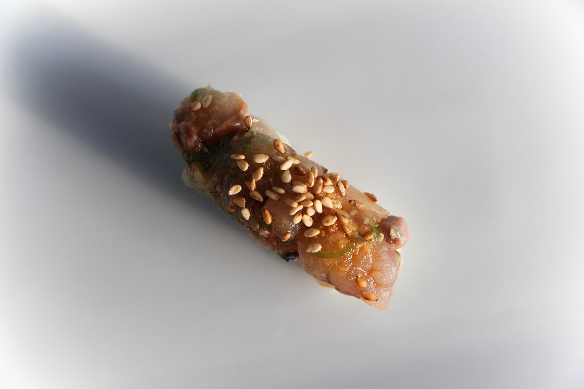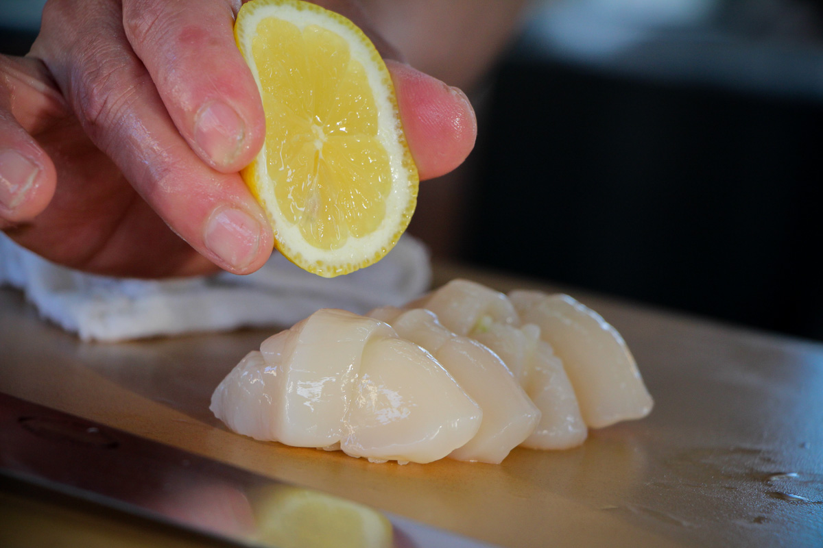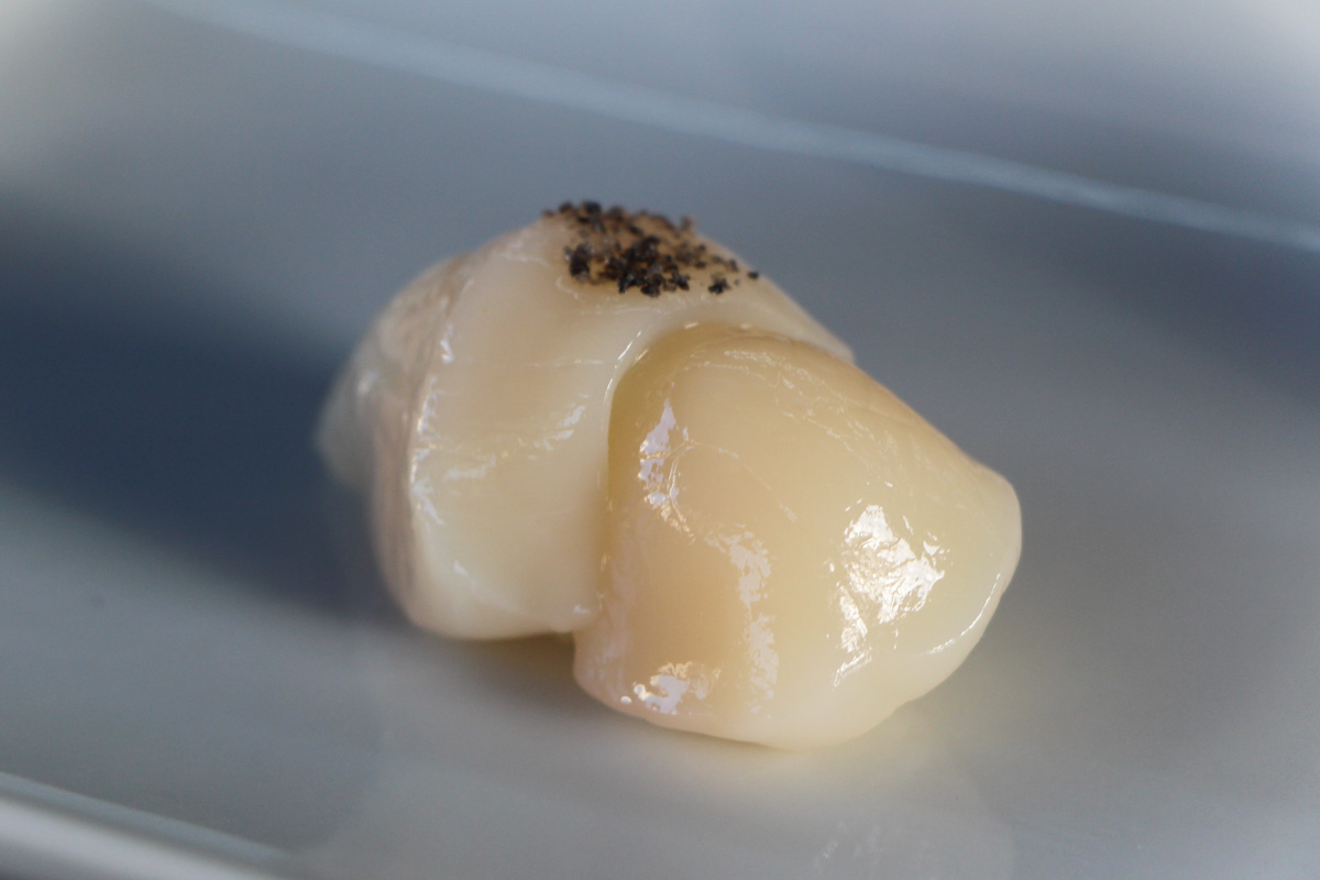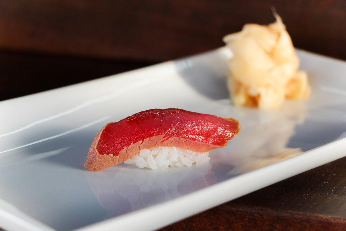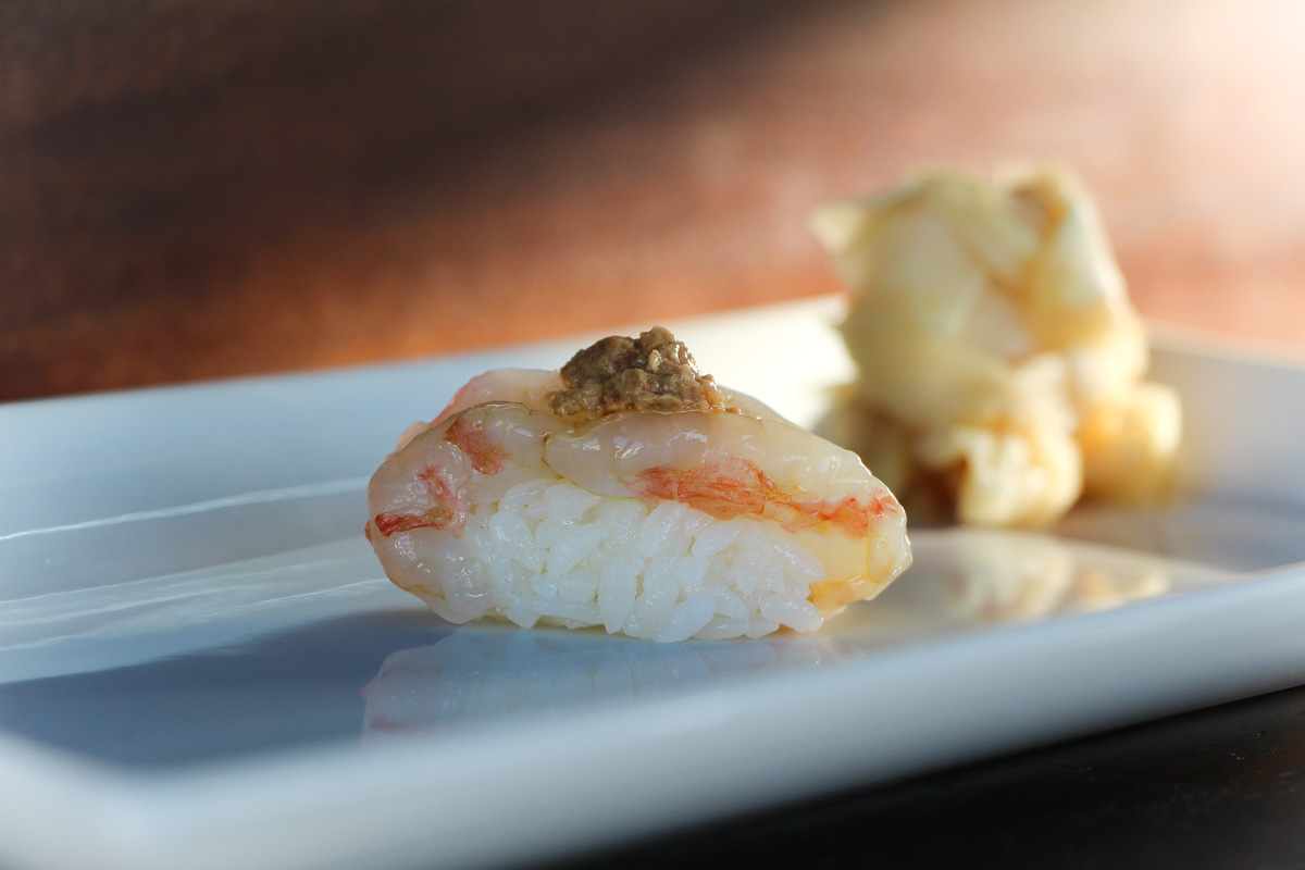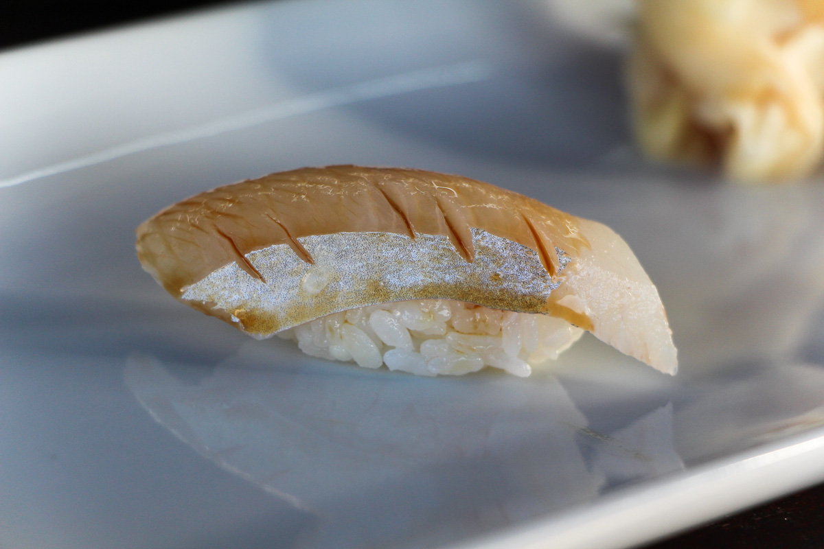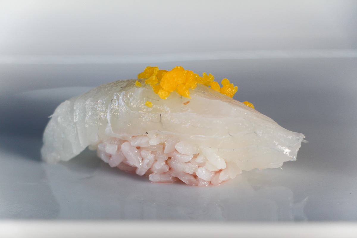 During our meal we got to try traditional nigiri pieces topped with fish like amberjack, toro, sea urchin, pompano and sea scallop, along with signature nigiri of Yoshida’s topped with items like horse mackerel, ginger and scallions; fluke with flambeed sake and egg yolk; red snapper with shisho leaves, sautéed plum and sesame; seared-on-the-spot bluefin toro that melts in your mouth and a hand-roll overflowing with spicy scallops. The fish that is served is brought in from both the Atlantic and Pacific waters, with the menu changing daily based on availability and season.