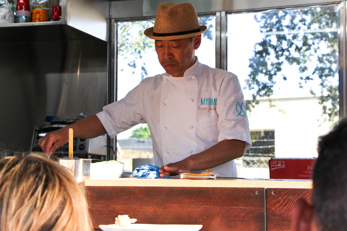 Owned and operated by two New Yorkers, sushi veteran Kazuo Yoshida of 1 or 8 in Williamsburg and TV-producer-turned-restauranteur Jake Smith, Myumi Sushi serves the traditional omakase experience to sushi lovers out of its custom-made food truck that can seat six (with soon expanding to 12) people at a time.