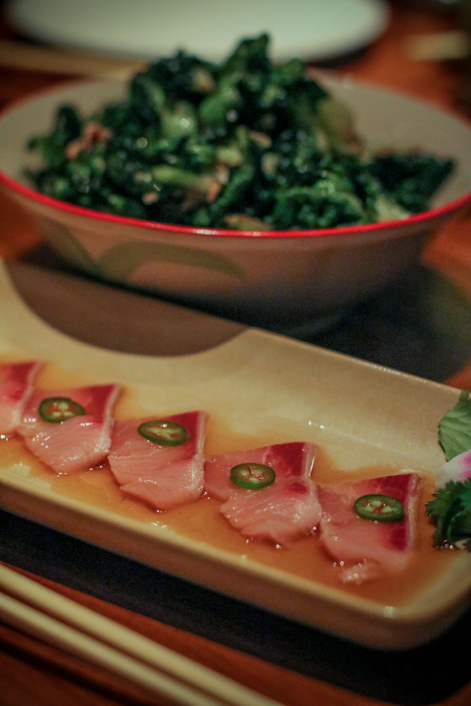 The dishes at NaiYaRa are a great mix of the traditional and non-traditional fare. The extensive menu includes raw dishes, rolls, hot and cold appetizers, noodles and rice, entrees and of course dessert. And there were plenty of standout dishes throughout the menu. Favorites of the tables included the Beef Jerky with coriander, nahm jim jao sauce, burmese sticky rice; Chiang Rai Sausage with lemongrass, chili, soy, jalapeño salsa; the Salmon Demon Slayer roll with sweet miso, jalapeño, shallots, sake; the NaiYara Roll made with salmon belly, cucumber, avocado, scallion, truffle oil, topped with salmon belly ‘crème brulee’; Chilean Seabass with sweet miso glaze; Vietnamese Prawns with 5 spice, onions, chives; and the Crispy Duck Peppercorn with bell peppers, onions, basil.