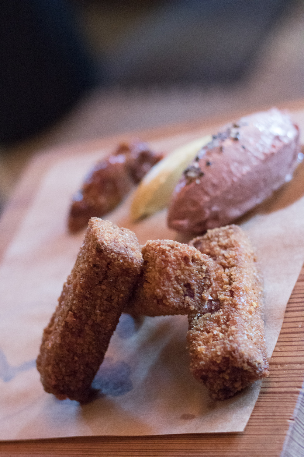 Must be the reason why on a Friday at noon there’s a wait time for a table and the 80-foot cocktail and raw bar made from reclaimed pine from other areas of the hotel was completely full (luckily, we had reservations). “Friday lunch in New Orleans is an event (one with cocktails)”, says Larry Miller, Compton’s hubby and front of house maven. And Compère Lapin was indeed the most eventful and memorable dining experience of the entire trip right from bread service, which here comes in the form of heavenly Buttermilk Chive Biscuits with honey butter and bacon butter.