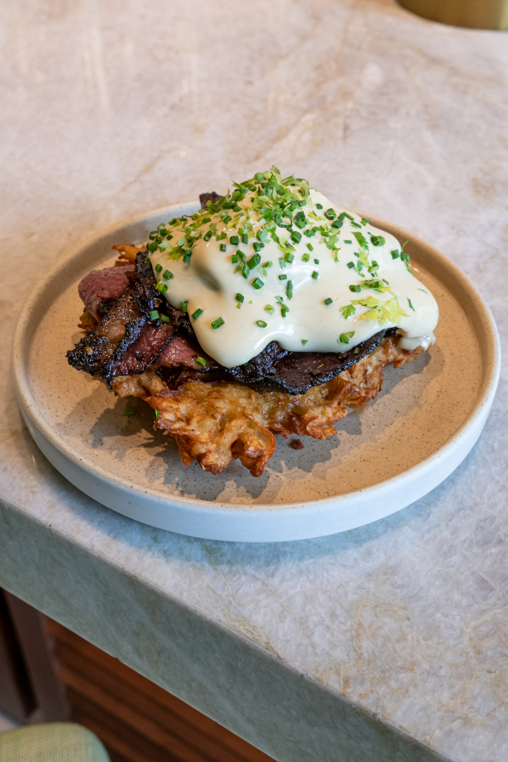 To start, there’s the $75 bottomless Moet package, and while it might be what catches your attention, it’s surely not what you’ll remember. Truly the food – and cocktails – are where it’s at. We eased into the day with the 75 Apples, a vodka-based spritz with rosemary and a delicate topping of cava. The Pink Delorean is also a light and refreshing gin-based choice for those who aren’t into bubbly drinks, with manzanilla sherry, watermelon, lime and mint.