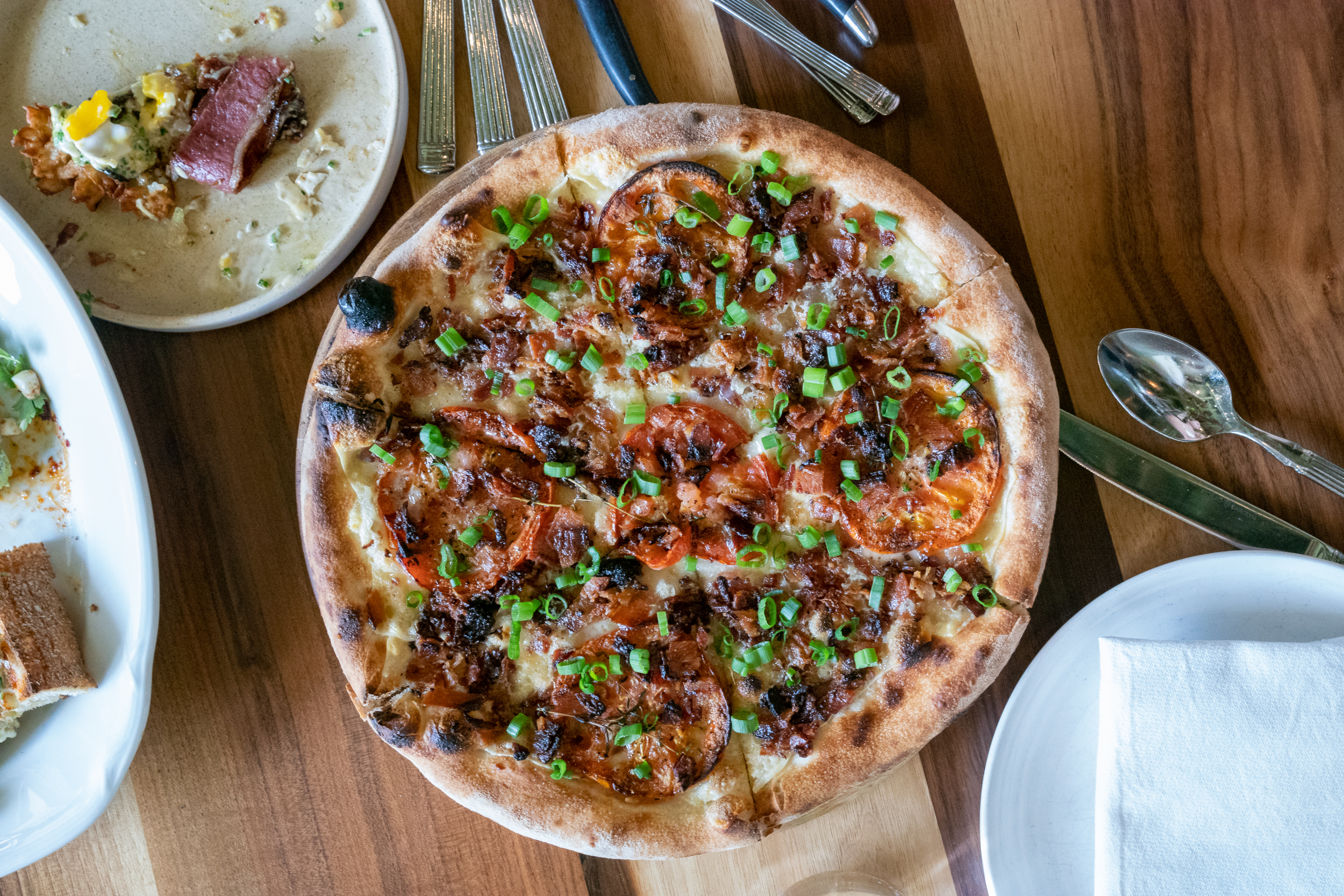 We’re getting ahead of ourselves here, because breakfast must come before dessert. Our first bite was the Housemade Pastrami Benedict, a latka topped with thick pastrami slices and a lava flow of hollandaise sauce. Never had we ever had a more perfect latke. It was crispy on the outside but cushiony and flavorful on the inside; a most comforting dish to come back to again and again. We also had the Chilaquiles, which were made with fresh ingredients from Rancho Patel. They, like the House Smoked Bacon Pizza, are safe bets for a large table, and will keep even the pickiest eaters happy as a clam.