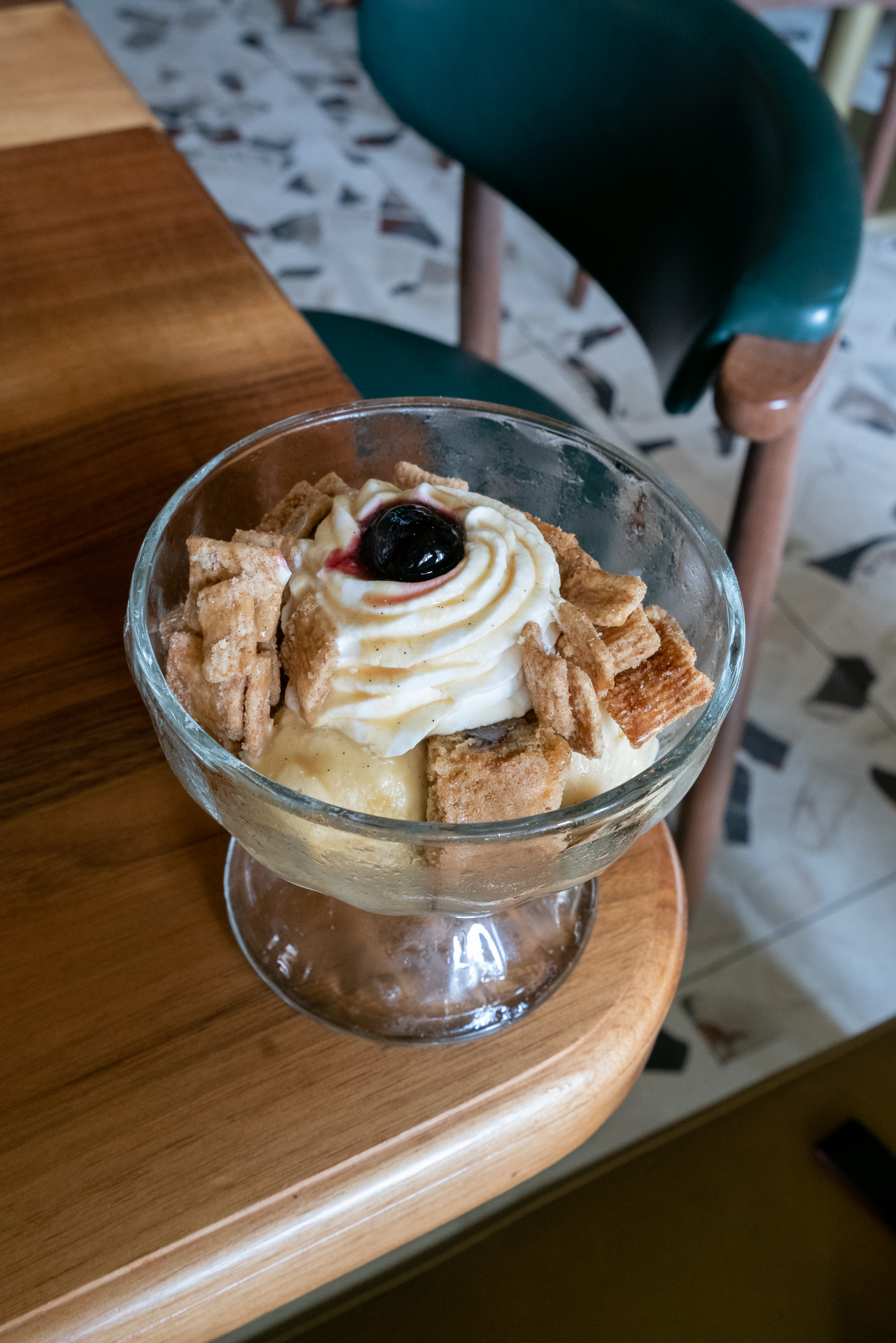 If it sounds like we over ordered, maybe we did. Still, we made room for dessert! There was the Sticky Bun, a cinnamony sweet dough topped with pecans fresh vanilla bean ice cream. Then there was the Cinnamon Toast Crunch Sundae. It’s like a 90s childhood, but lux. There’s ice cream. There’s a blondie. There’s “the taste you can see.” There’s also a maple caramel drizzle, cherries, and a swirl of chantilly cream to top it all off.