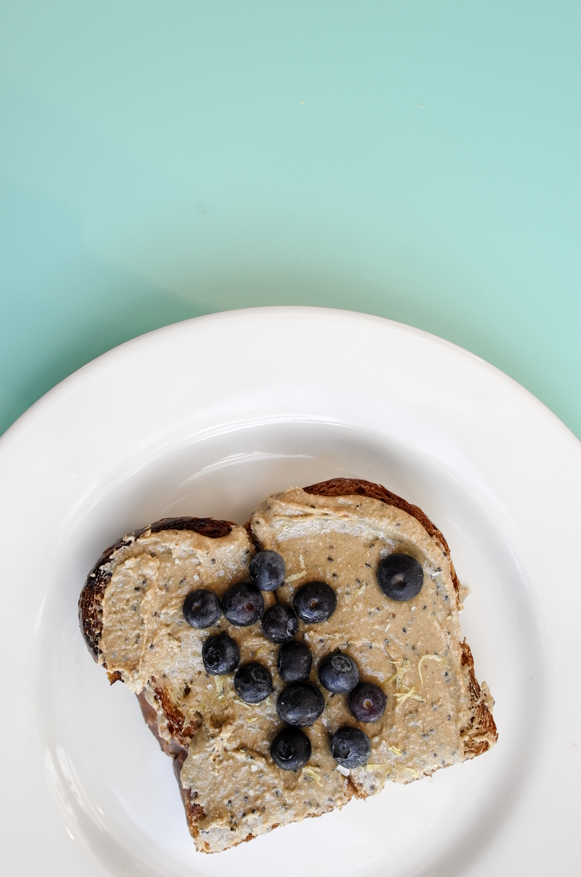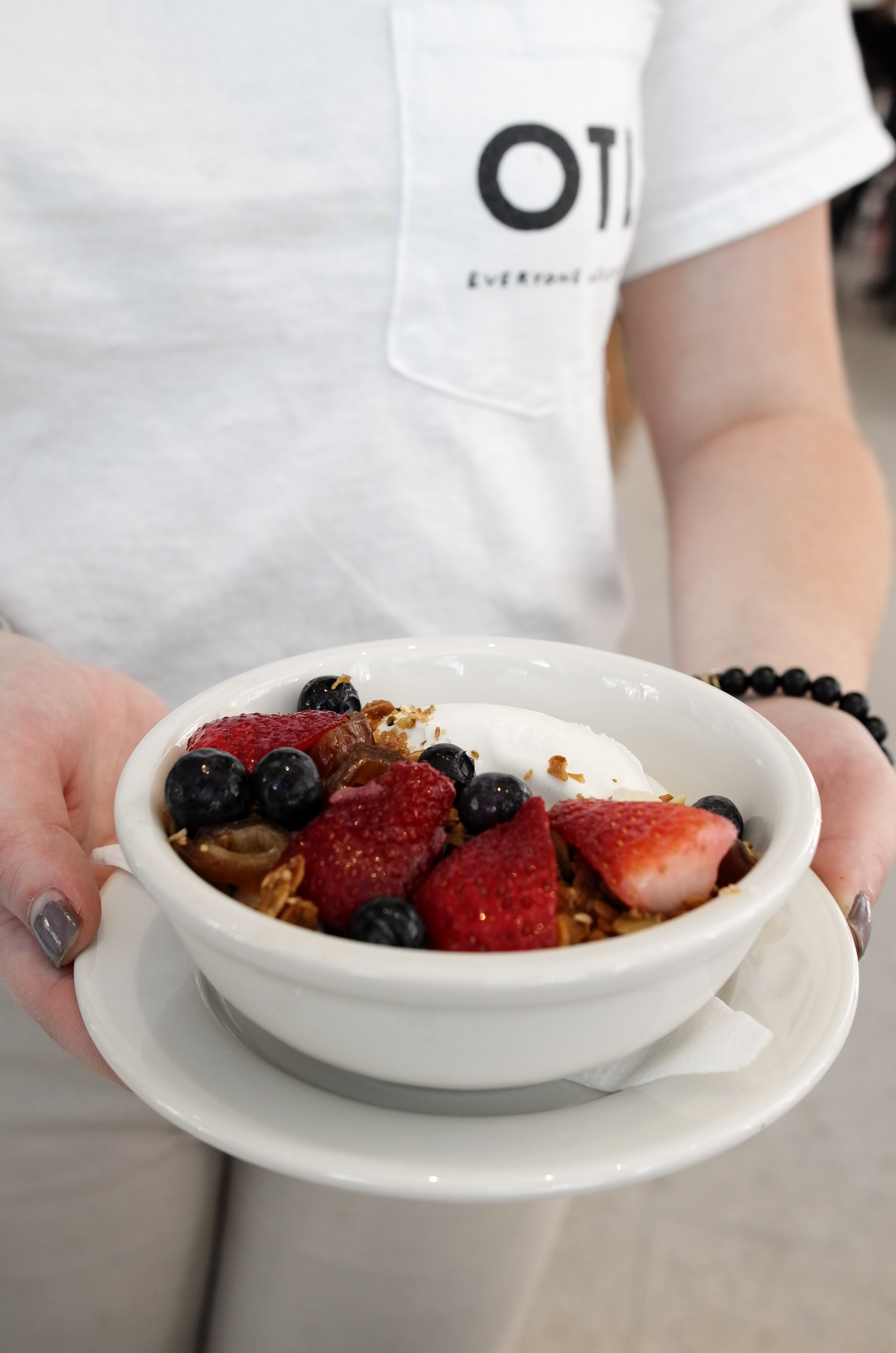 The menu features a variety of dishes that would work for both breakfast and lunch, so naturally we tried a few of each. We started with a slice of its Spanish Tortilla, topped with paprika aioli and charred peppers, which can be turned into a sandwich if you so desire, along with the OTL Seed Butter Toast that is brioche bread topped with macadamia nut butter and blueberries and cut into four perfect portions.