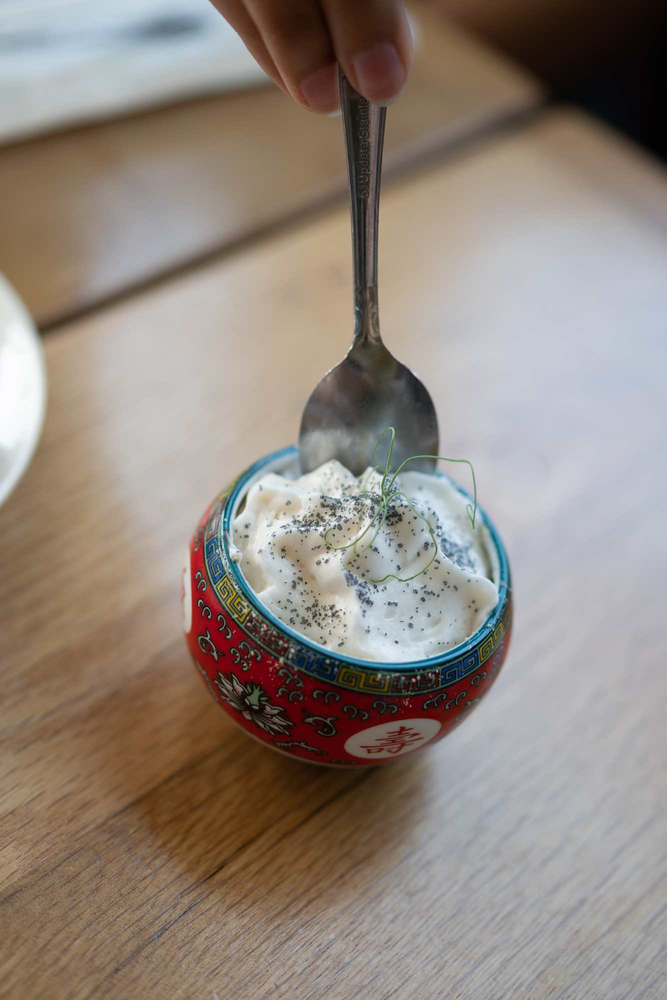 Finish it up with a refreshing plate of Assorted Fruit or 5-Spice Egg Custard with coconut espuma, yuzu-mango marmalade and a coriander crumble.