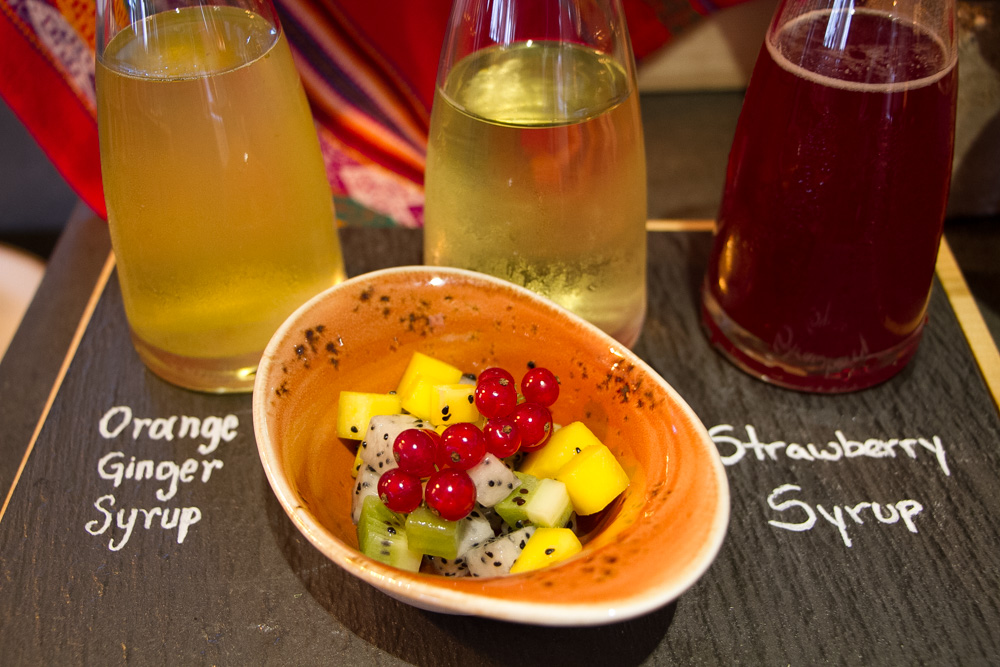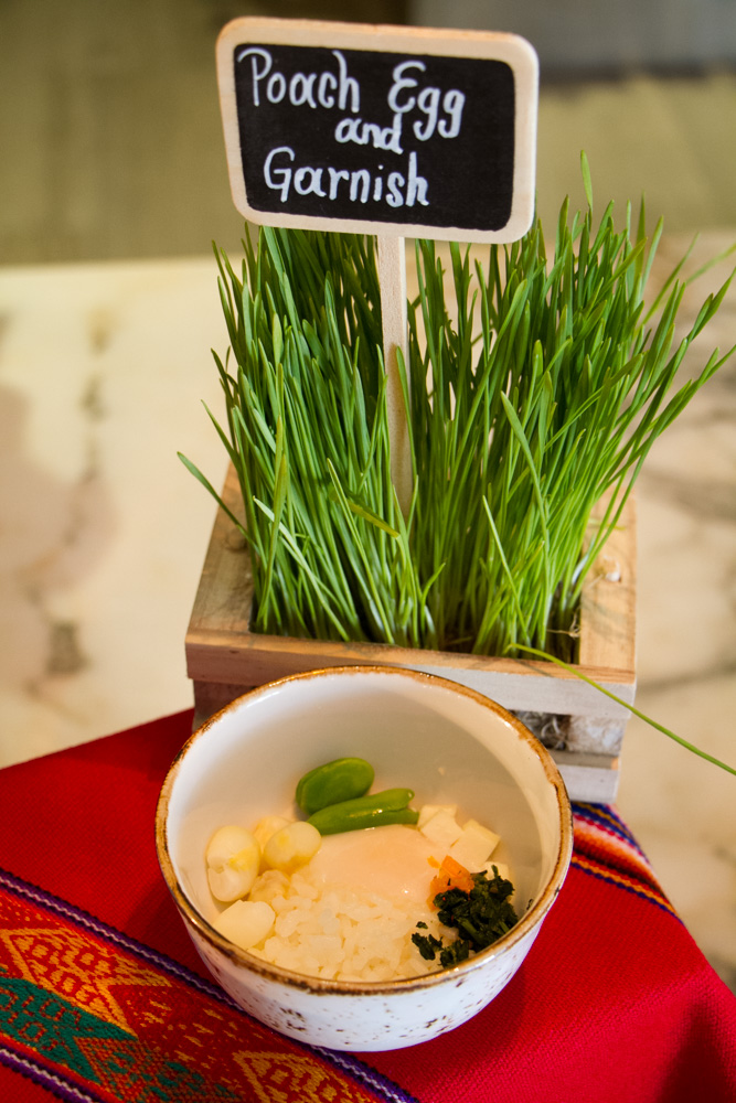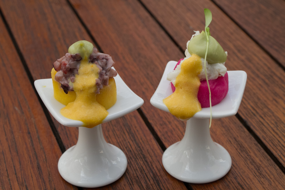 The brunch begins with an extensive hot and cold buffet featuring some of the almost year-old restaurant’s classic dishes prepared by Executive Chef Diego Oka. The cold station contains items like seafood ceviches, causas, tiraditos, and Peruvian-style sushi rolls. Directly adjacent to it is the hot offerings with items like anticucho grilled chicken, octopus, veal heart, and yellow corn along with an assortment of empanadas, sliders and whole fish.