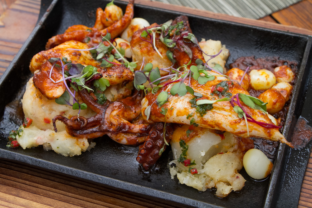 Each diner then gets an option to choose one of four main courses like the Grouper Chorillana, with grouper, tamarind chorrillana sauce and mashed yuca with smoked bacon or Plancha Anticuchero, grilled octopus and calamari with crushed potatoes, ají panca pepper sauce, chimichurri and choclo corn. For an additional fee there is an option for “premium entrees” like the King Crab Plancha Anticuchera with crushed potatoes, ají panca pepper sauce, chimichurri and choclo corn or a 16 oz Churrasco a lo Pobre with ribeye angus beef, chimichurri, beans and rice tacu-tacu, egg, and fried banana.