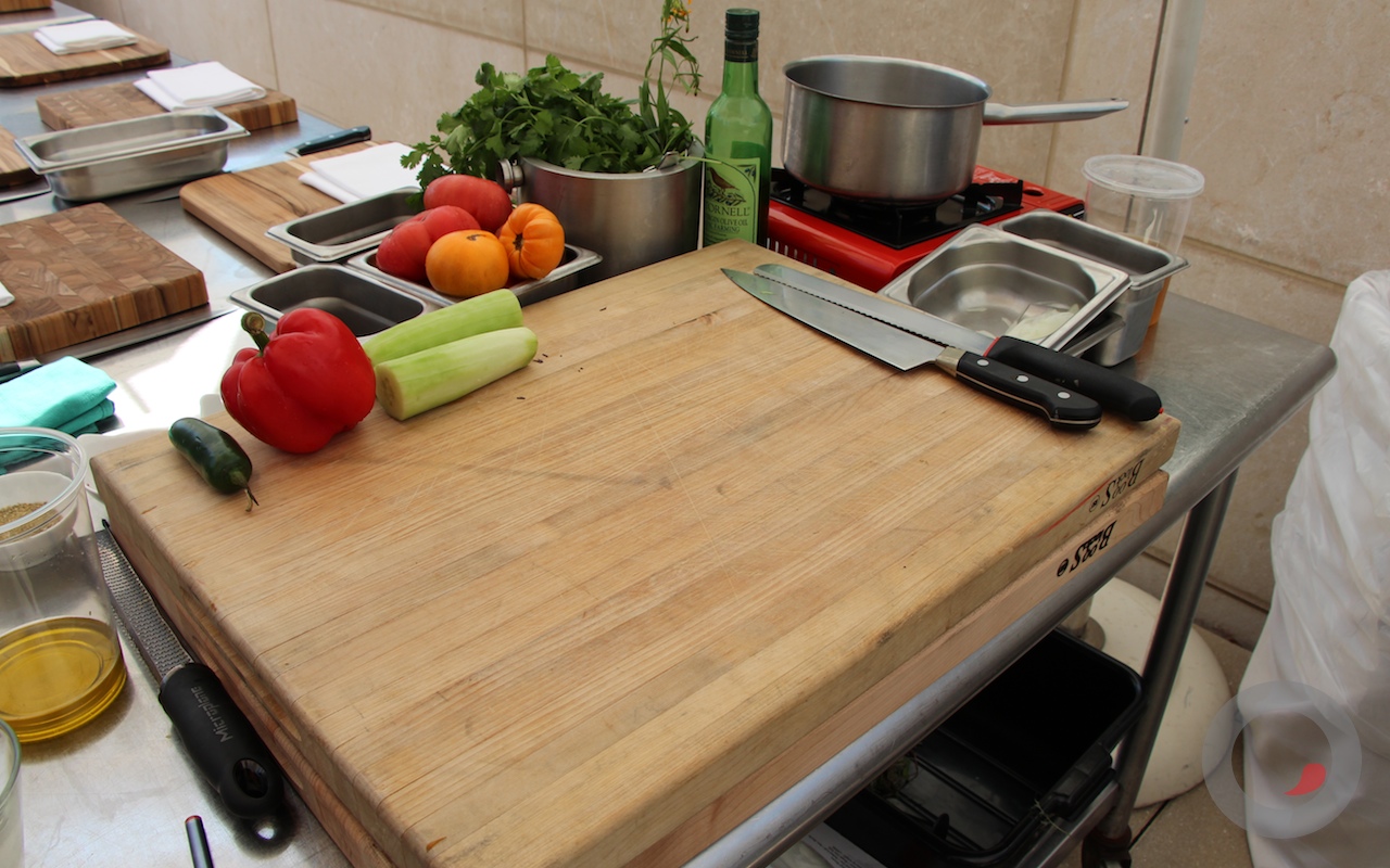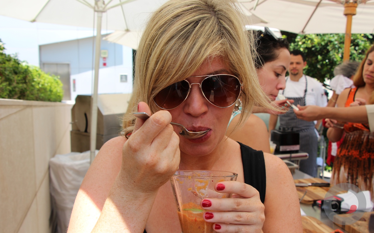 The first course the group learned how to make was an heirloom tomato gazpacho with Key West pink shrimp. The students cut up the Teena’s Pride tomatoes while Brooks explained the process for making the gazpacho. He emphasized the importance of using fresh ingredients while seasoning and tasting the dish every step of the way. The final result was a fresh, tasty gazpacho that is perfect on a warm Miami day.