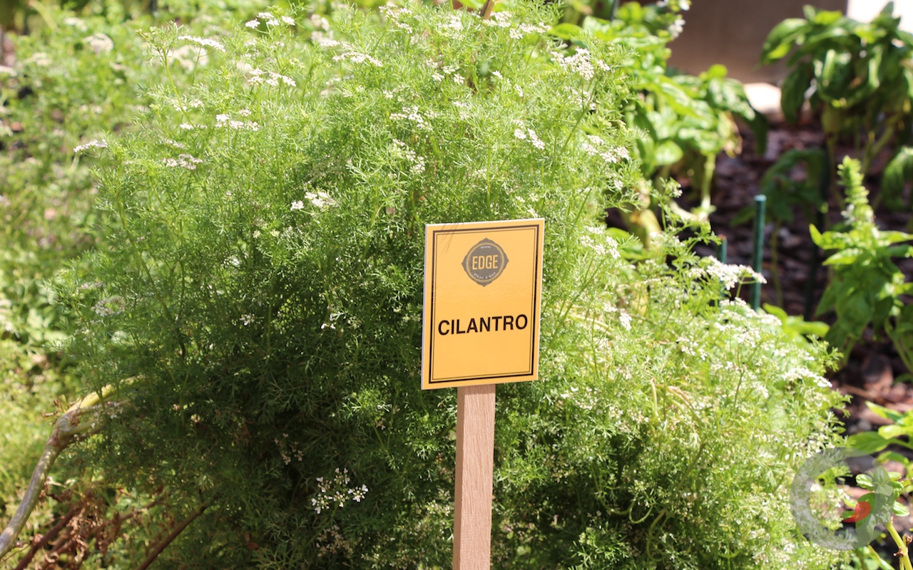 After being greeted on the Edge patio with welcome “Don’t Ask Don’t Tell” cocktails and crudités, the students were escorted to the restaurant’s impressive garden to pick fresh herbs to be used in the dishes. Brooks explained to the group that even if the herbs have blossomed, they can still be used and bring an amazing burst of flavor to a dish.