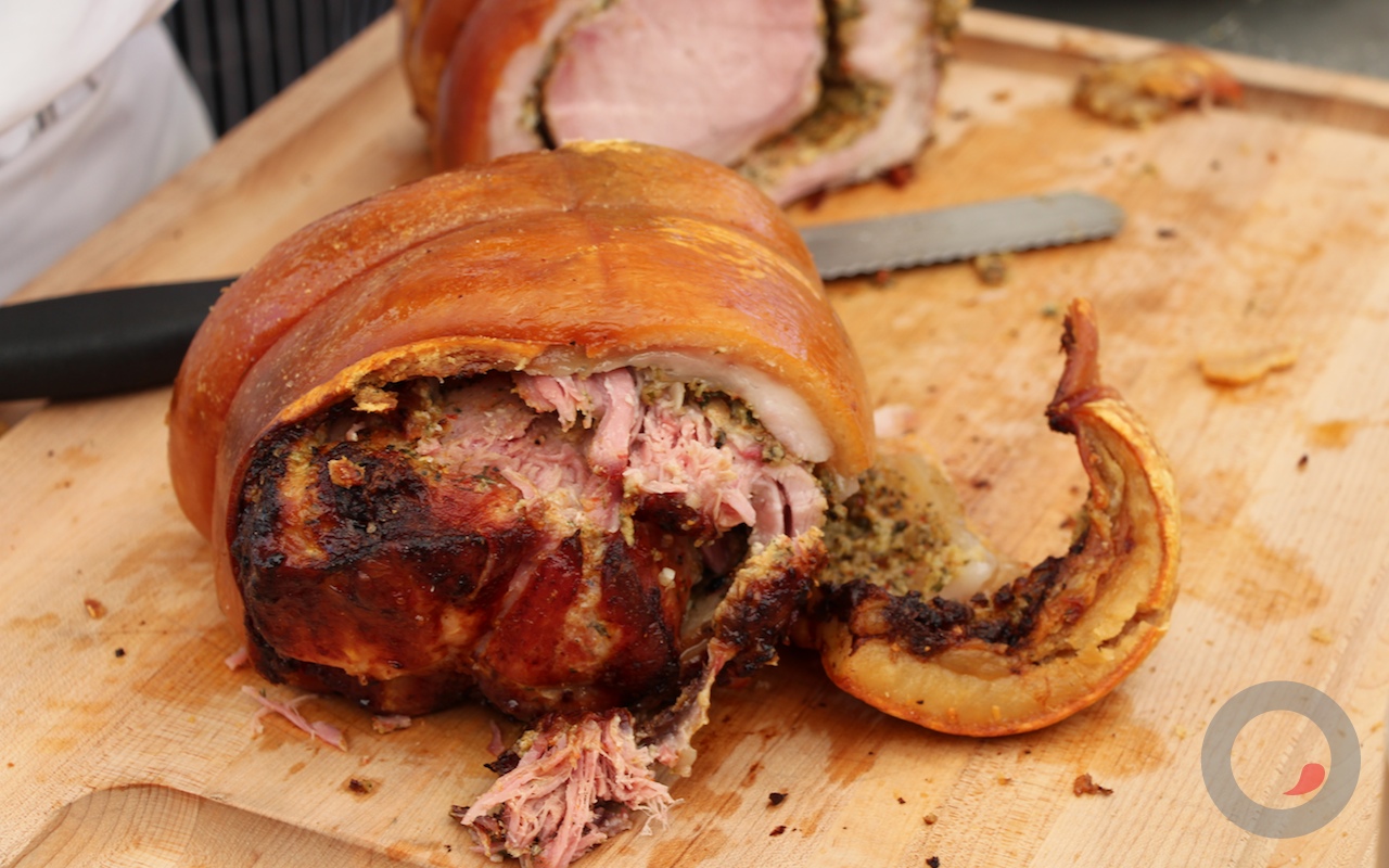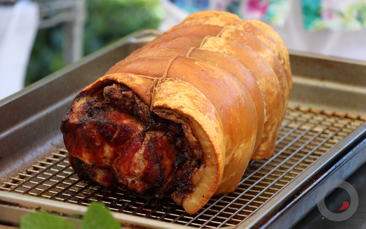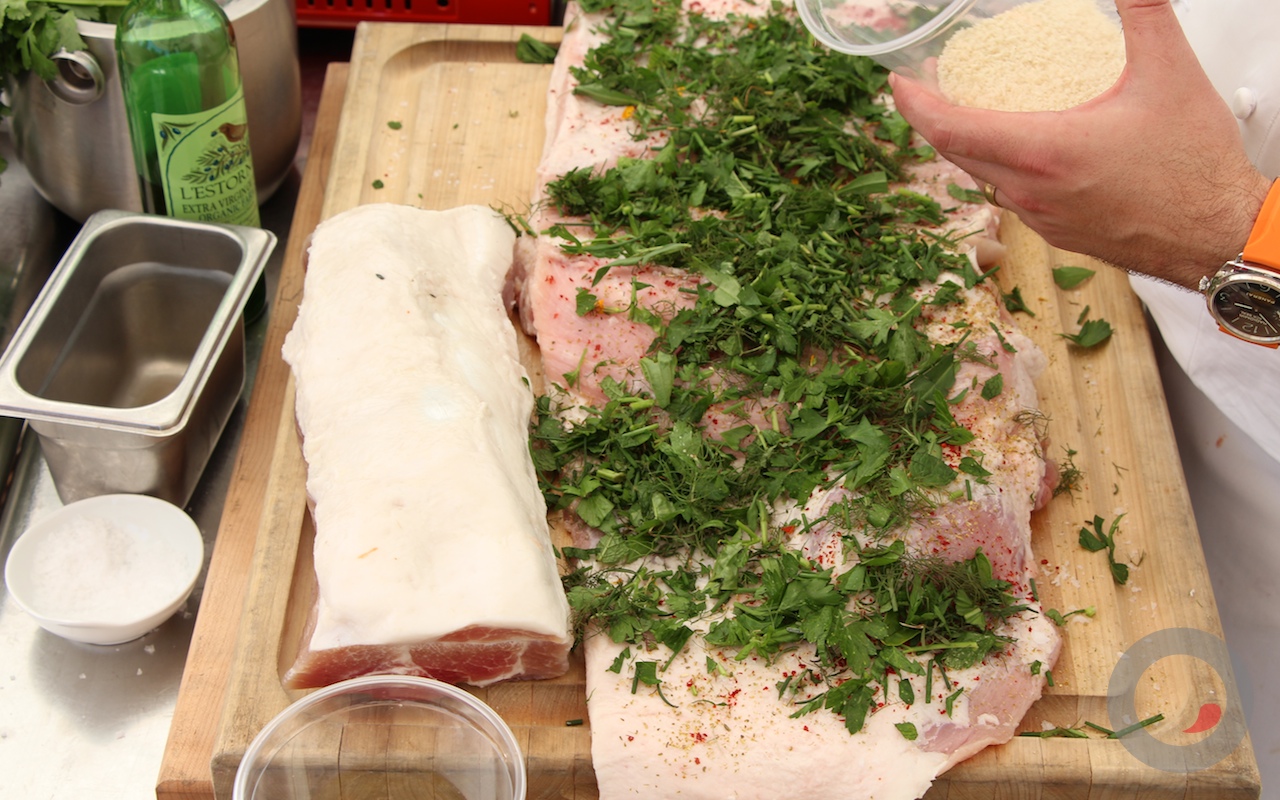 To teach the group how to make the butternut squash and pickled pepper salsa, Brooks handed over the teaching duties to his Sous Chef Jose Gamez. The students learned a diverse, yet easy, pickling method that could be used for any vegetable you may have around. The guests then helped cut the butternut squash, that was grilled up and tossed with “pepitas.” The light salad and the tangy salsa were the perfect complement to the rich, melt-in-your-mouth porchetta.
