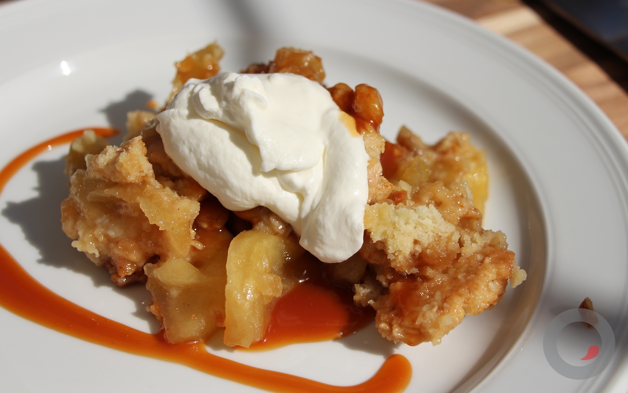 For the final course, pastry chef Sarah Thompson taught the group how to make her grandmother’s apple cobbler with warm caramel sauce and vanilla cream. A dish she said she made every weekend while growing up, the incredibly informative Thompson shared many of her tips while preparing the dessert such as not mixing the dough with your hands since it melts the butter and using granny smith apples so you don’t encounter graininess. For the cobbler topping, she made an almond based crumble with salty notes, something she likes doing in her recipes to help wake up the palate and bring out the flavors of the dessert. Needless to say, there weren’t any leftovers.