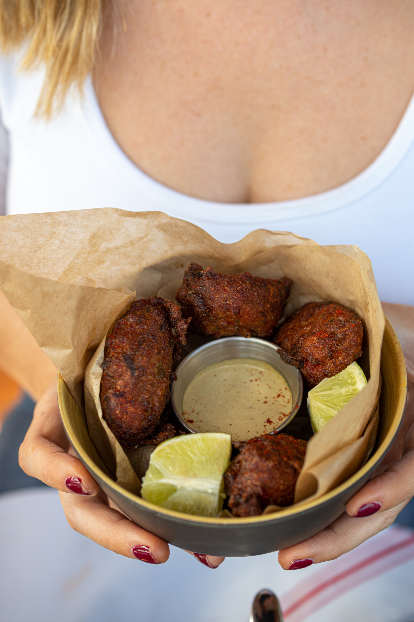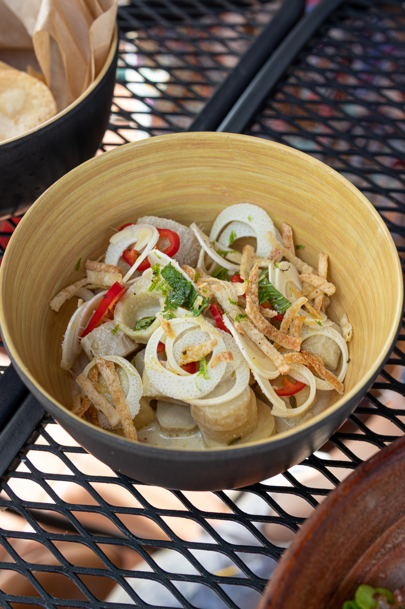 Terras, helmed by chef Harry Capacetti is a decidedly vegetable-centric menu with plenty of fresh produce being the star of the menu. Appetizer highlights include a Coconut & Hearts of Palm Salad tossed with ginger, fresno chili, lime, malanga, and salt; Black Beans and Queso Dip with right out of the fryer plantains; and Alcapurrias made with plantains, mushrooms, and cilantro yogurt.