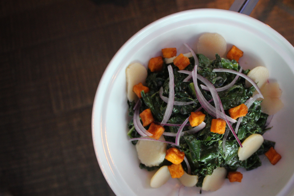 New items and favorites from last year made their way on to this year’s pop up menu, which is available at the bar nightly from 4 to 8 p.m. For starters we had Grilled Kale Salad with sweet potato, brussels sprouts, pickled water chestnuts and buttermilk dressing; Sweet and Sour Eggplant made with honey-baked eggplant, sherry vinegar, sumac yogurt, mint, and chickpeas and the tangy Calamari with romanesco white beans and a jalapeño-lime vinaigrette.