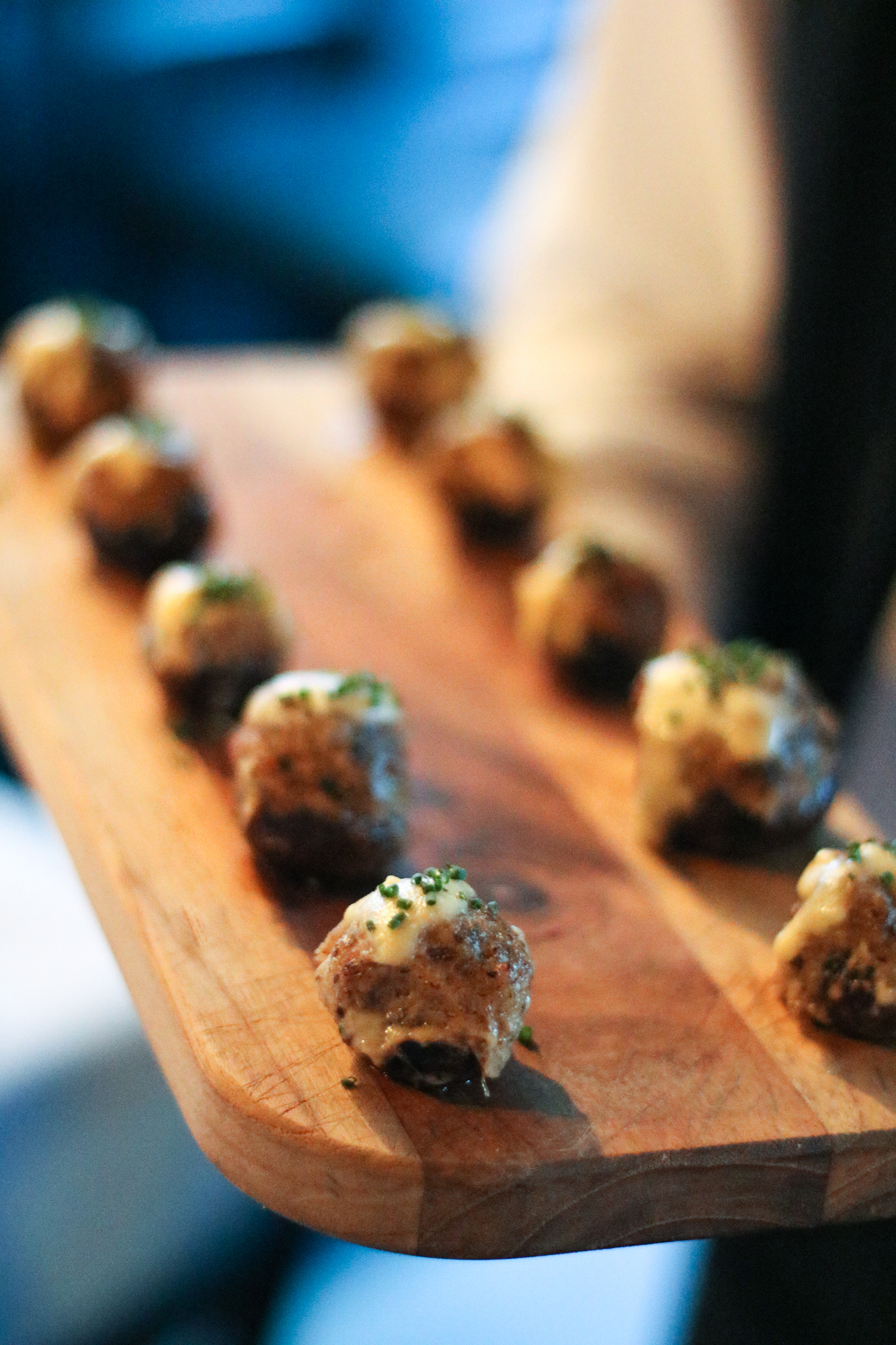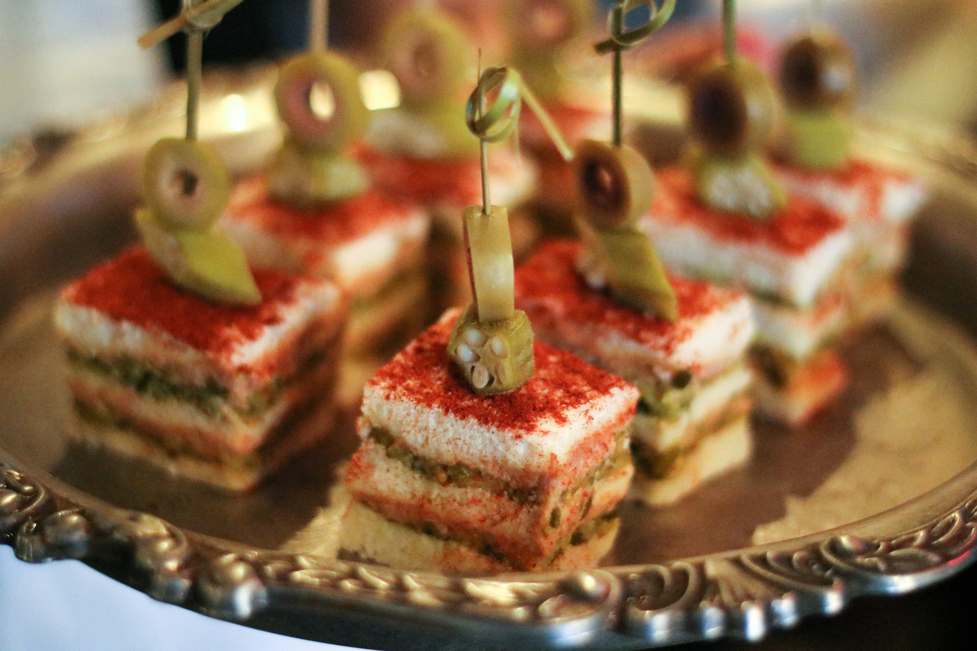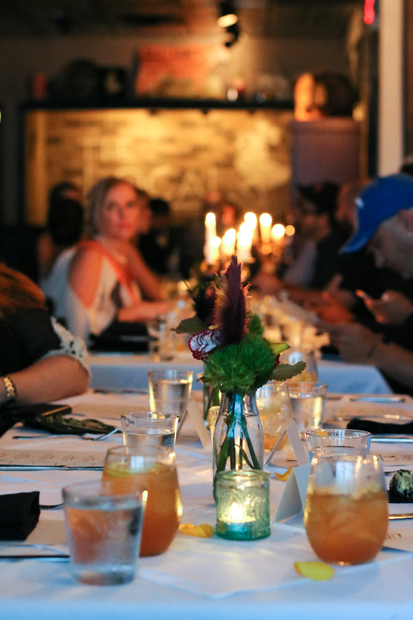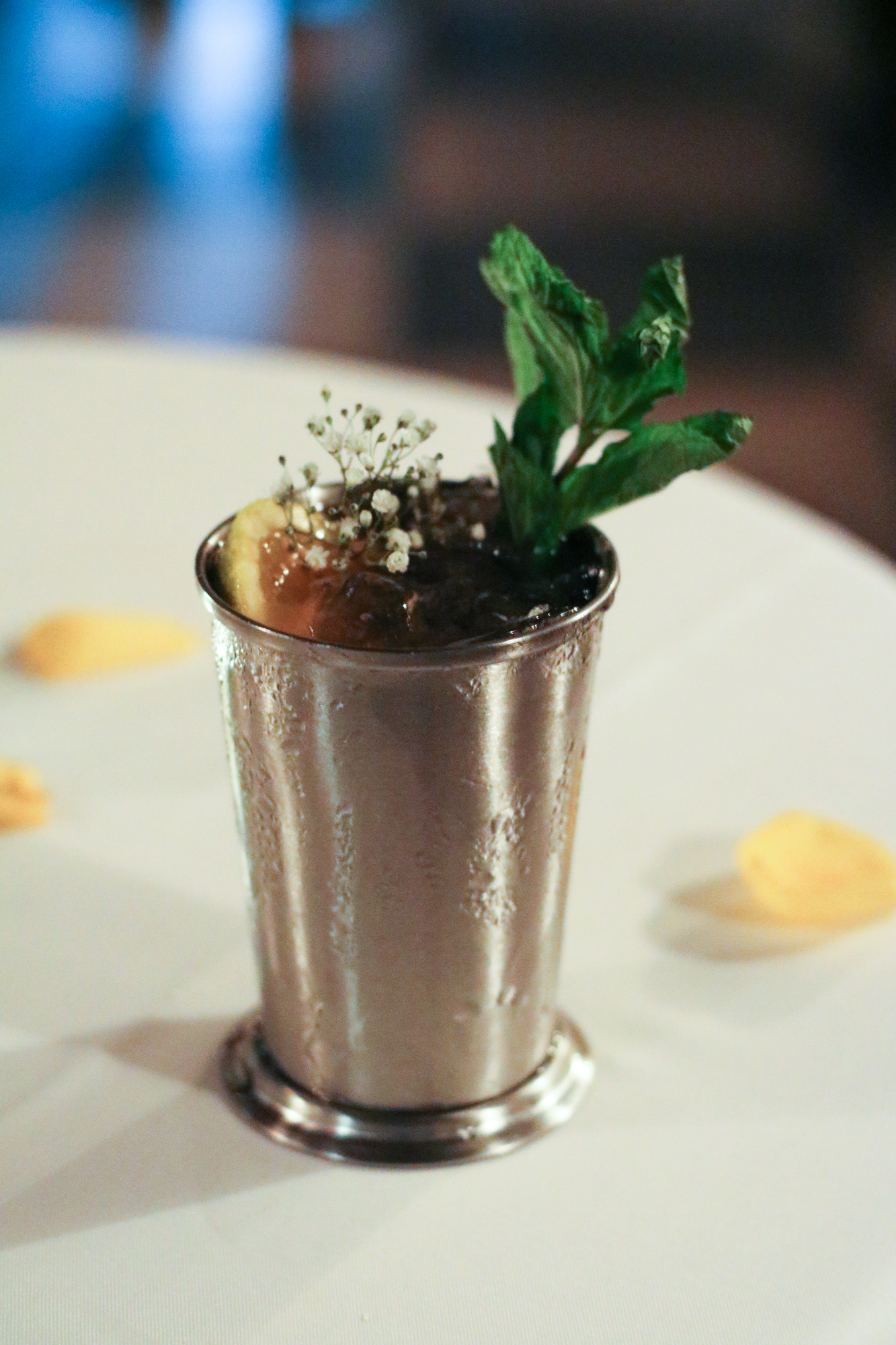 The restaurant completely transformed for the night complete with the wait staff dressed in 1920’s attire, white table cloths adorning the tables and plenty of jazz playing in the background. Guests were greeted by an assortment of passed bites when they first arrived including Deviled Crab Stuffed Mushrooms, Hushpuppies with Pimento Cheese and Country Tea Sandwiches, along with a welcome drink called the Sweet Georgia Brown made with Jim Beam®, Peach Tea, Lime Juice, Dill Chili Syrup, Bitters.