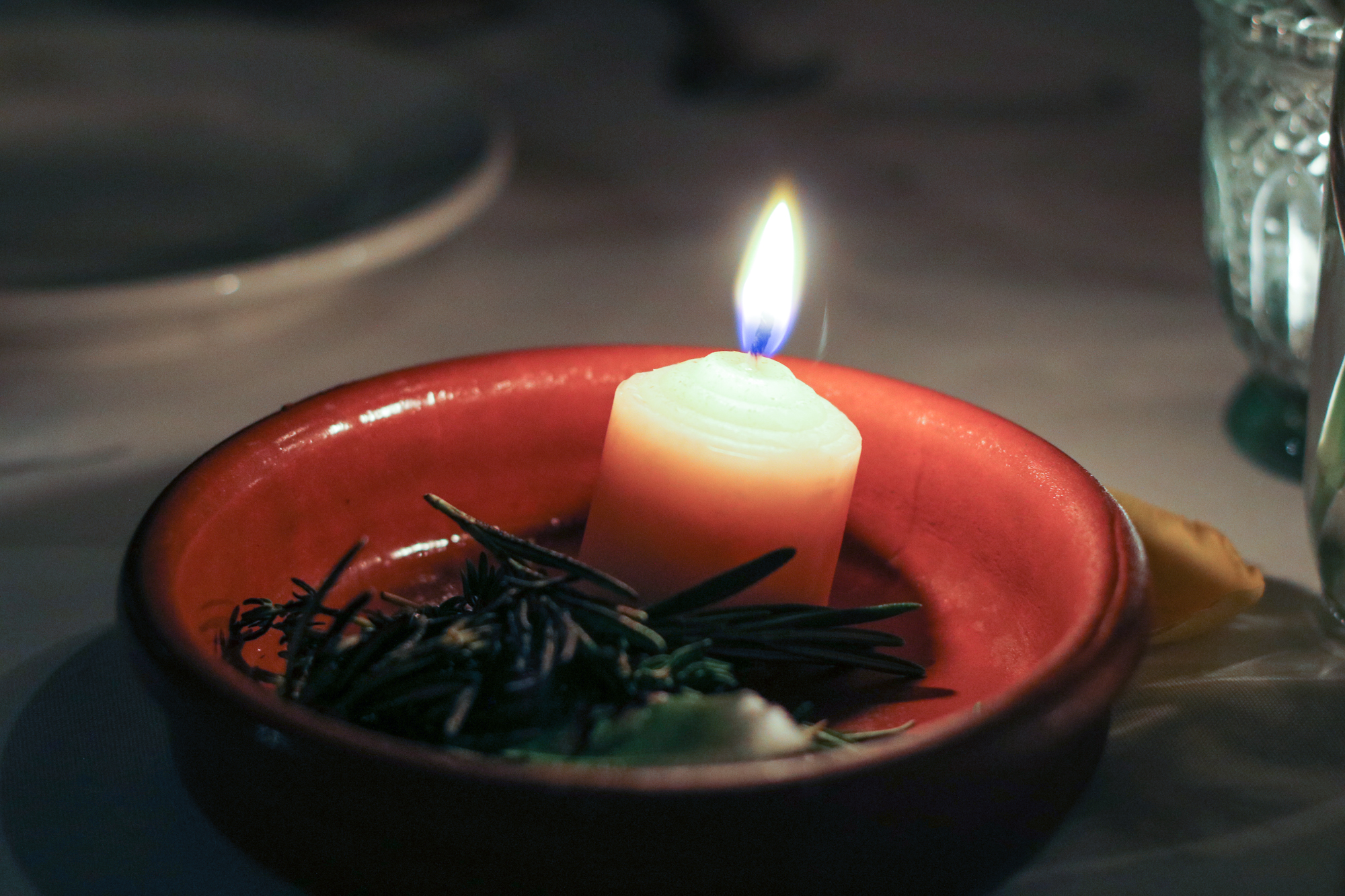 While waiting for our final savory dish, Pot eu Feu of Short Rib, with Bone Marrow, Sweetbreads with Fermented Cabbage and Bourbon Foie Broth, a beef fat candle surrounded by herbs was brought to the table that when melted was the perfect dip for our warm bread. Helping wash it all down was a Chicago Overcoat made with Jim Beam® Black, Cocchi Americano, Laird’s Applejack, Sage, Angostura and Cardamom Bitters.