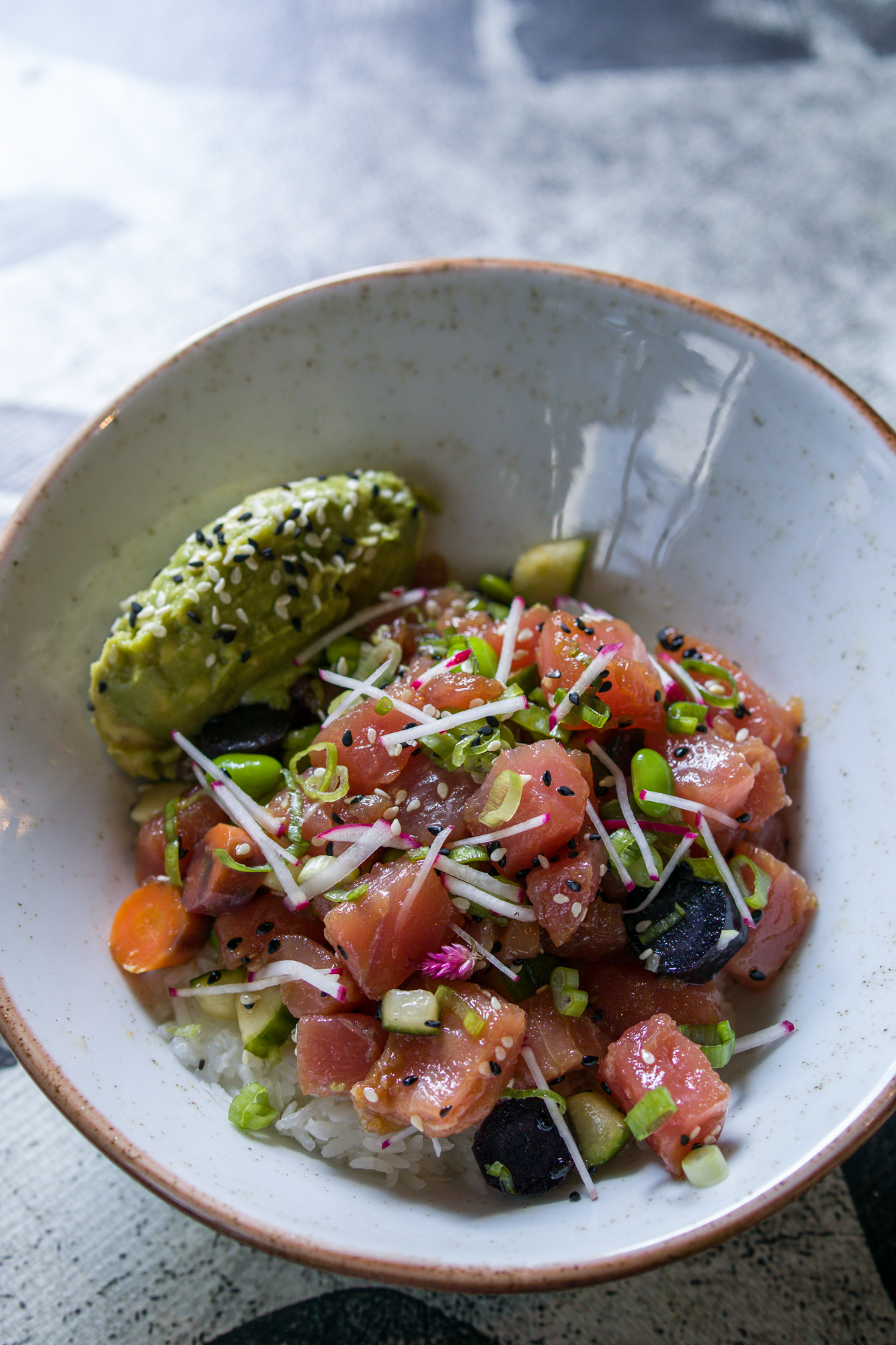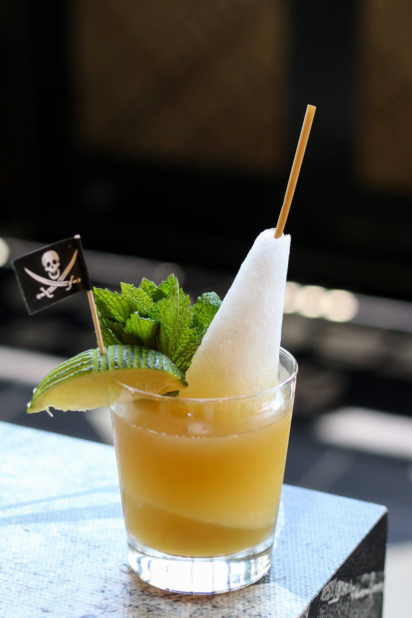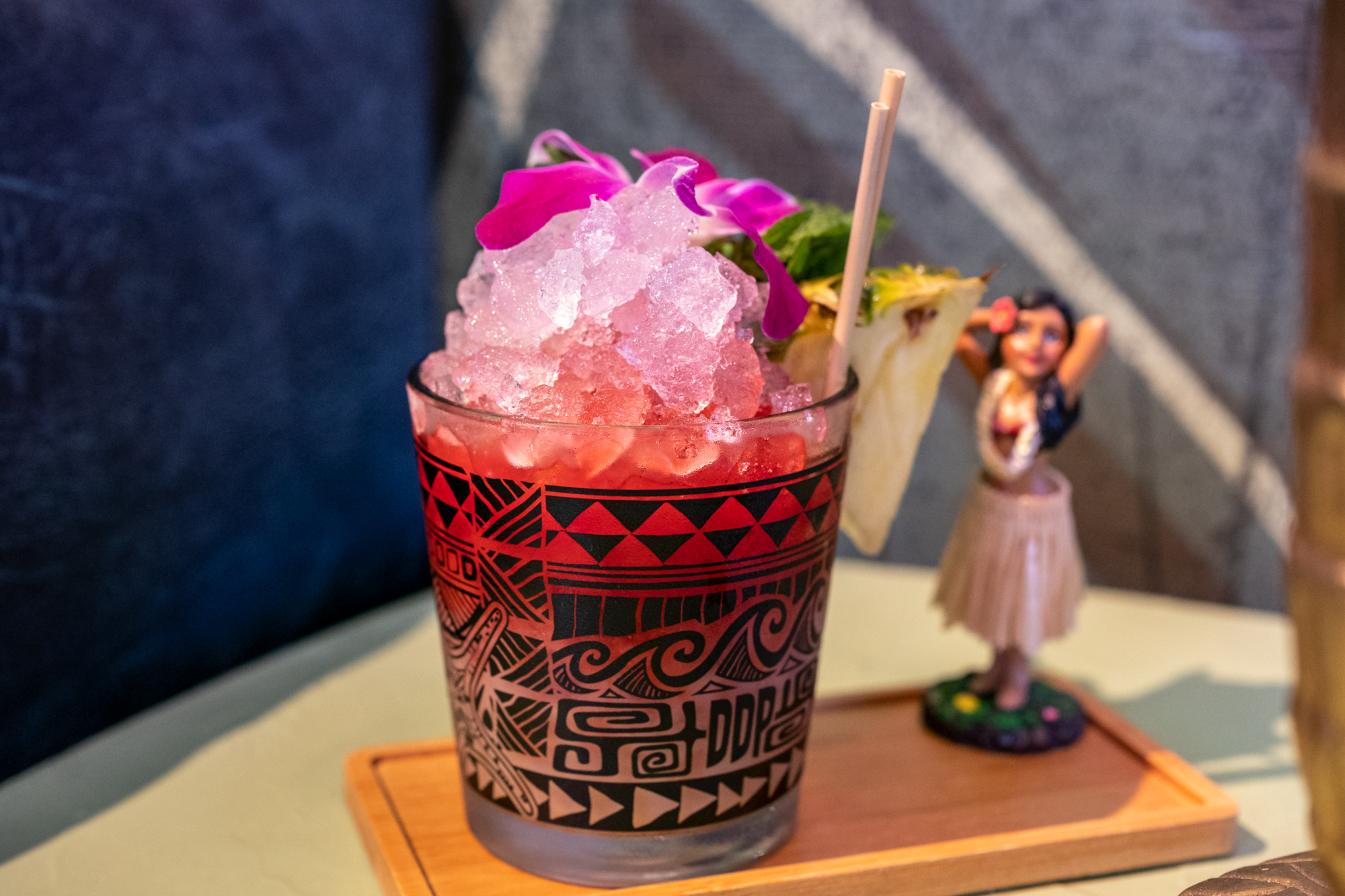 The food menu features a variety of sharing plates and full dinner options. Starters perfect for opening up your appetite are the Black Truffle Dumplings, shrimp and pork dumplings served with a truffle ponzu sauce and lemon zest, the Octopus Hot Dog, served on a brioche bun with a Mezcal relish and the Anakakia Lobster Roll, dressed in lemon butter and sherry sauce. Full dinner options include the Luau Pig, which can be ordered to share for $35, a slow-roasted pork shoulder served on a banana leaf with coconut rice. The Hawaii Five-0, a unique coconut fried rice with shrimp, crab meat and vegetables. If you are in the mood for even more decadent dishes, try the Black Kraken a squid and calamari risotto or the Peking Duck (half $43 or full $79). Poke Bowls are also available if you are looking for lighter fresh fare.